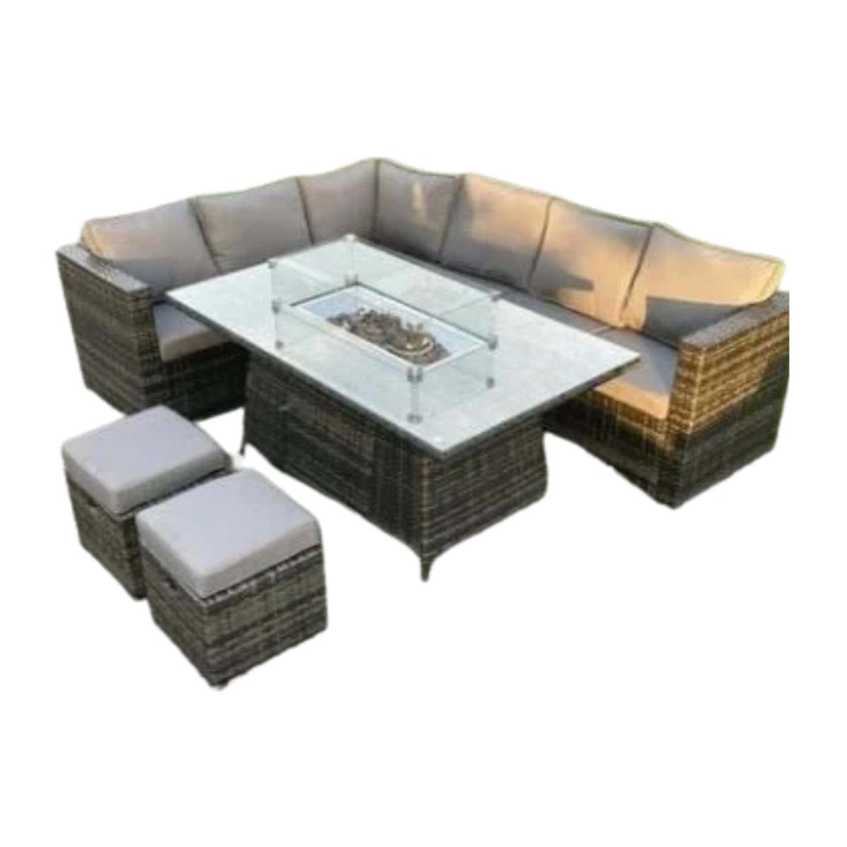 Glasgow 8 Seater Rattan Corner Set with Fire Pit - Dark Grey
