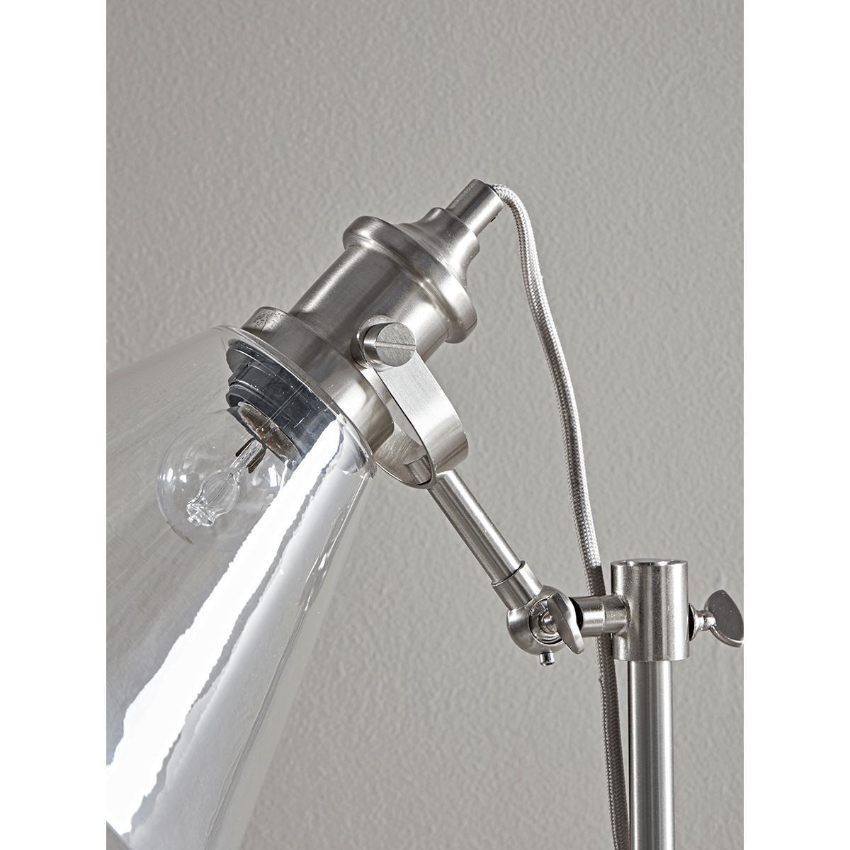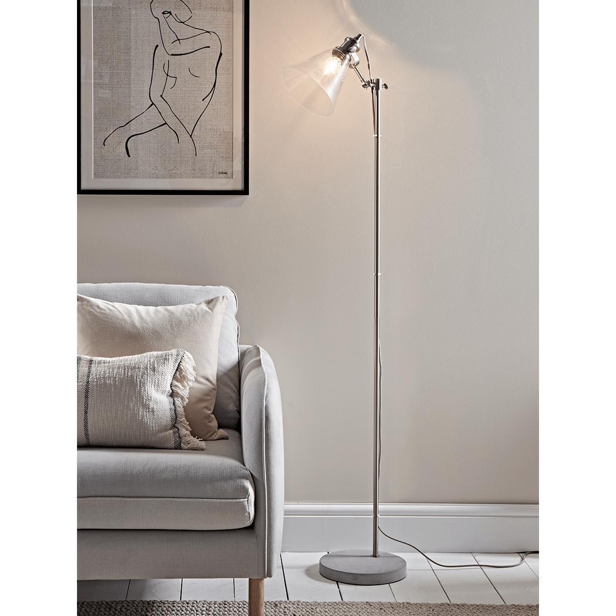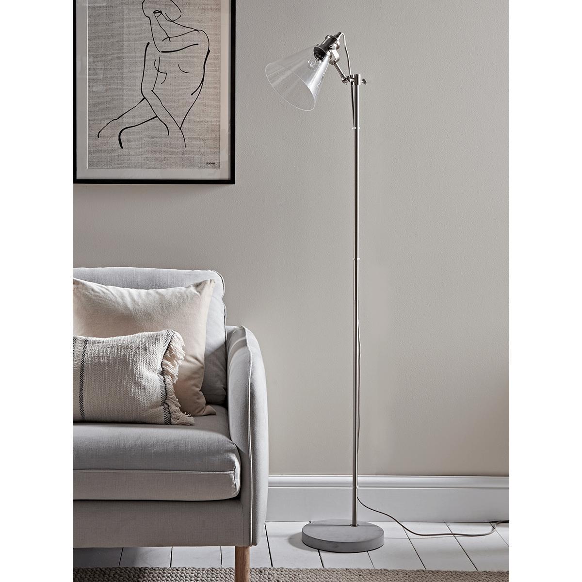 Made from weighty steel with a curved neck, our sleek floor lamp includes a sturdy round base and glass cone shaped shade. With a pivoted shade, this tall floor lamp is perfect for brightening up dark corners and works well as an oversized reading light for your favourite seating spot.