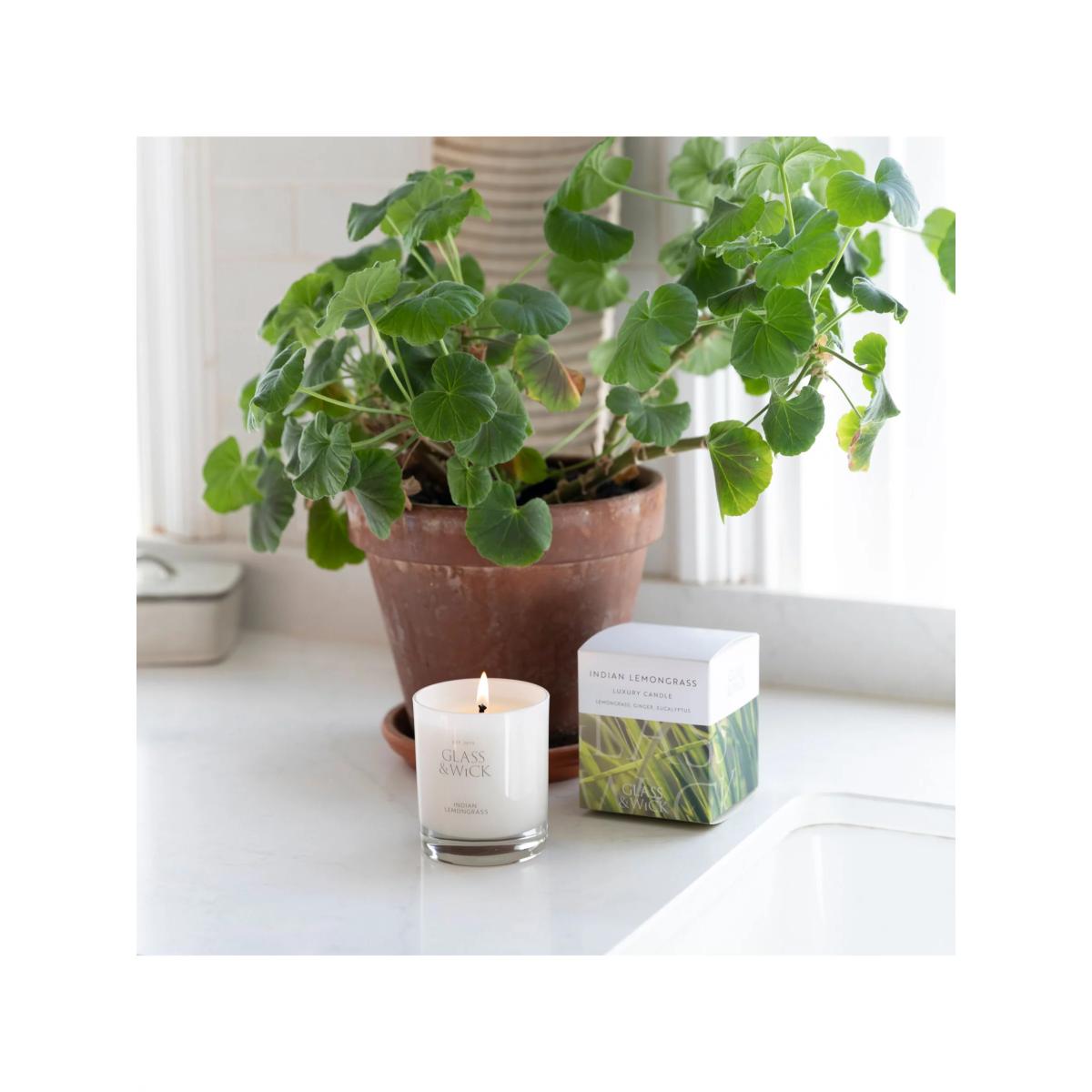 Glass & Wick Indian Lemongrass Scented Candle, 220g