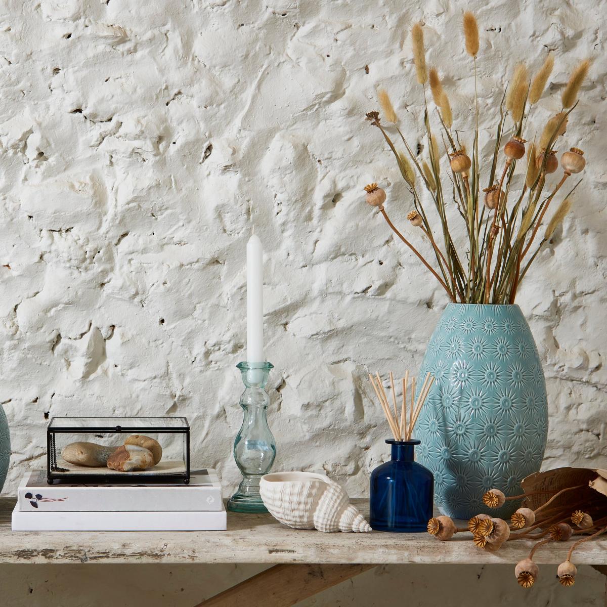 I love the simplicity of this clear glass candle holder-it’s incredibly versatile and adds a touch of understated elegance to any space. Its minimalist design makes it suitable for both modern and traditional interiors, working well on side tables, mantlepieces, or within open shelving displays. Practical styling tips include pairing it with candles in neutral tones for a subtle look or mixing with greenery and decorative objects for added visual interest. Its transparent finish means it won’t compete with other colours or patterns, making it a great choice for layered, curated vignettes or as a standalone piece to add a bit of glow to a cosy corner.