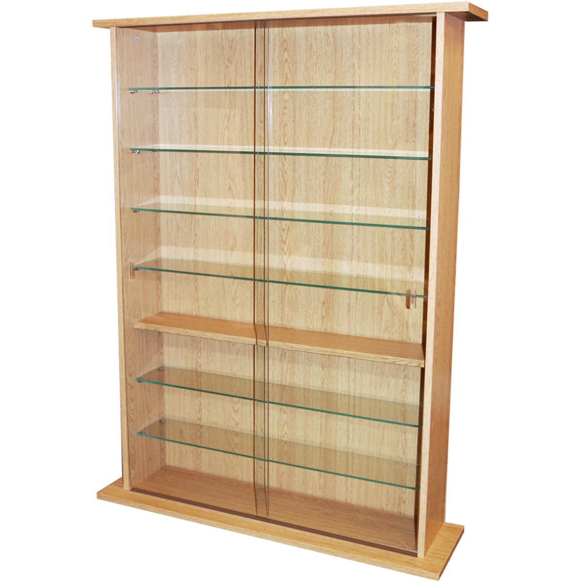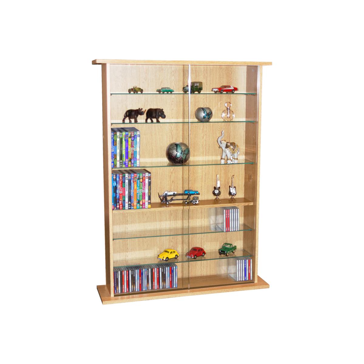 Glass Collectable Display Cabinet 600 CD 255 DVD Storage Shelves - Beech - Beech