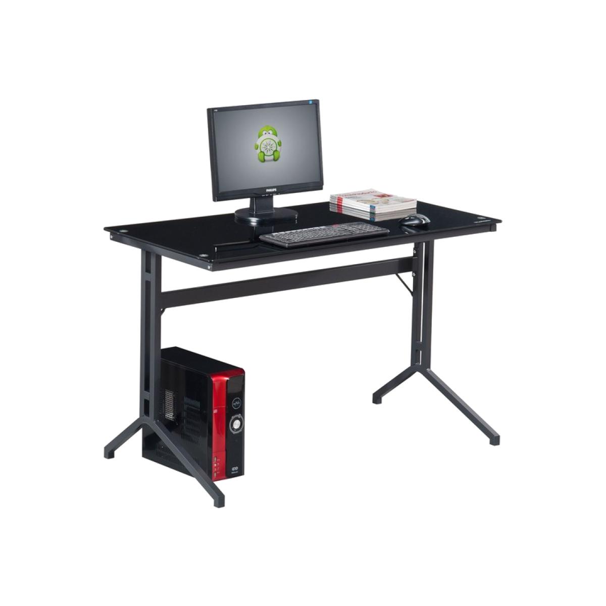 I love the glass computer desk for home office because its sleek black frame and transparent surface create a modern, minimalist look that works well in both contemporary and industrial interiors. Its clean lines make it a versatile choice, especially when paired with a mix of textured soft furnishings or subtle colour accents. Practical styling tips include keeping the surface clutter-free with organisers or decorative trays, which helps maintain its streamlined appeal. Additionally, placing it against a light wall or incorporating a statement chair can add visual interest without overwhelming the space. Overall, it’s an ideal option for anyone wanting a functional yet stylish workspace.