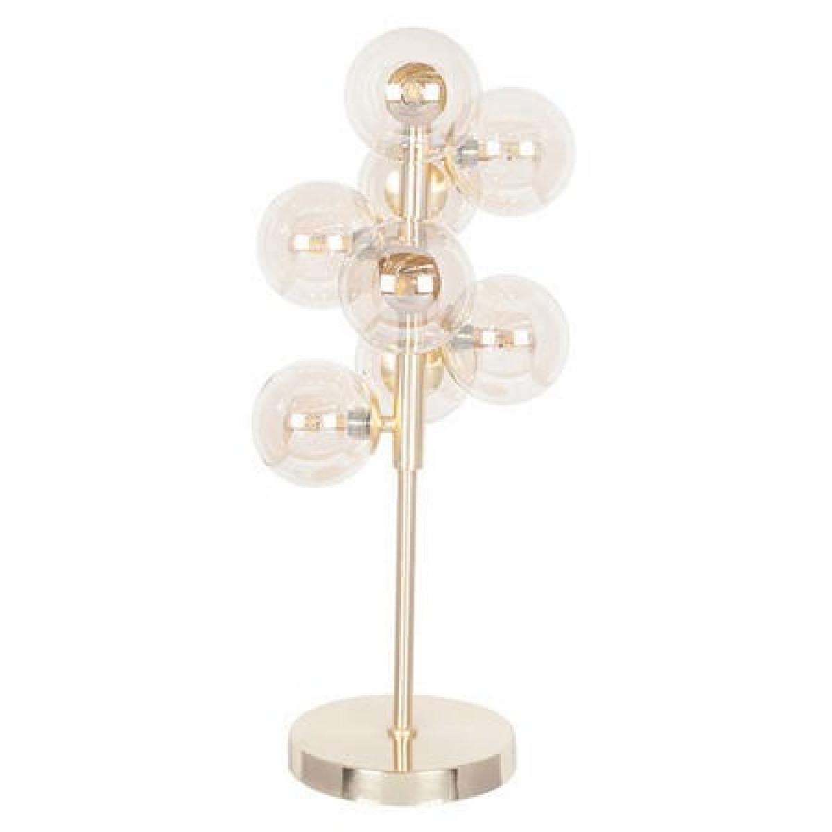 This exquisitely, contemporary lustre glass and champagne metal table lamp has 8 glass balls taking 8 G9 bulbs and a futuristic look all on its own. Taking up less space than a large shade on your console or bedside table, this style of lighting is proving a popular style statement.