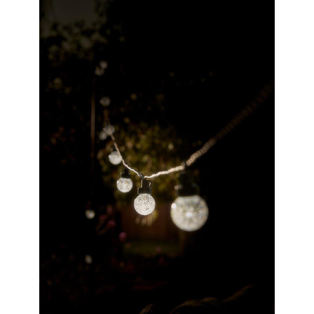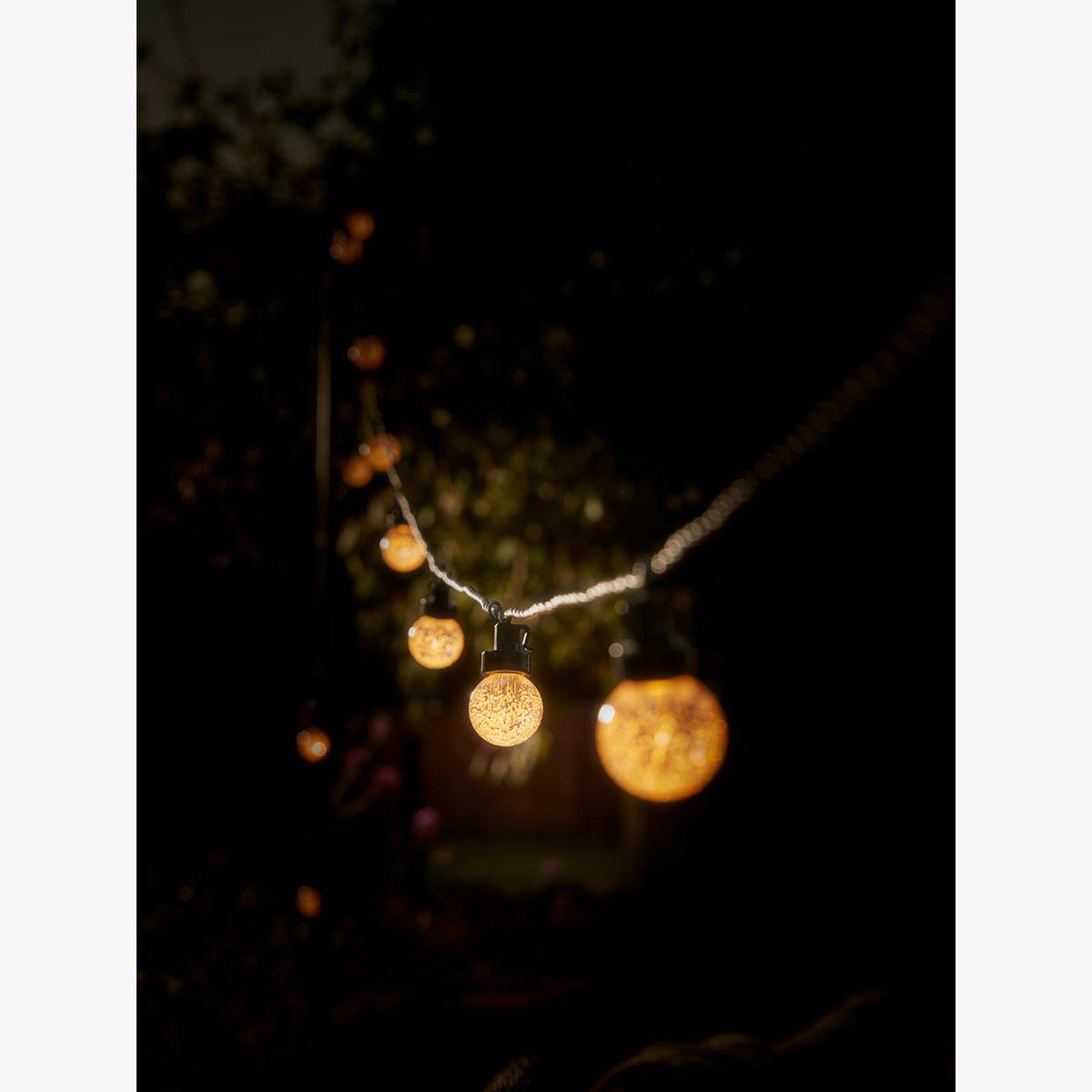 Warm your garden and create a welcoming atmosphere with our Glass Globe Festoon Lights. With delicate dots in the glass creating a unique glow, these lights are sure to add a radiant finish to your space.