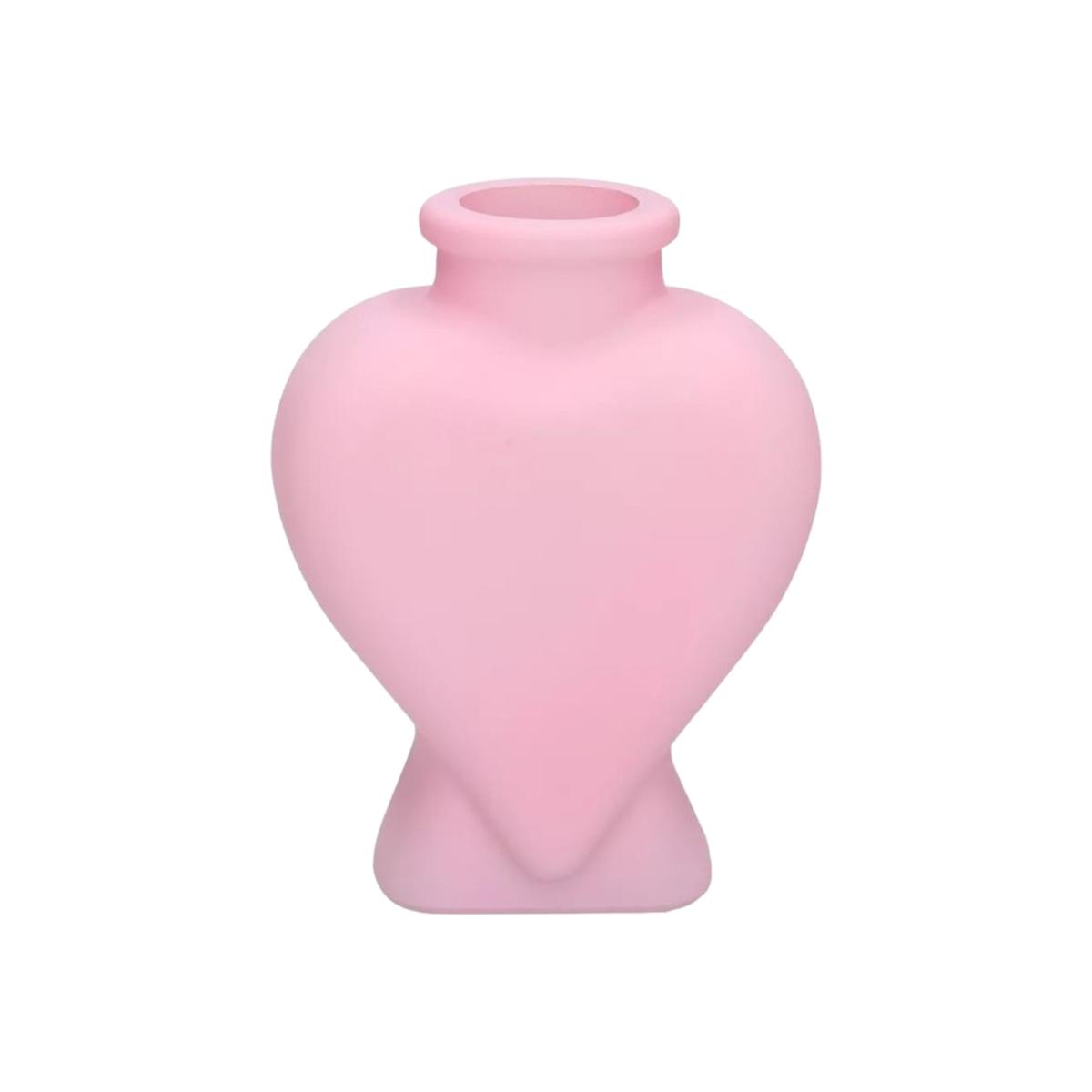 Glass Heart Shaped Vase H11.2cm - Matt Pink