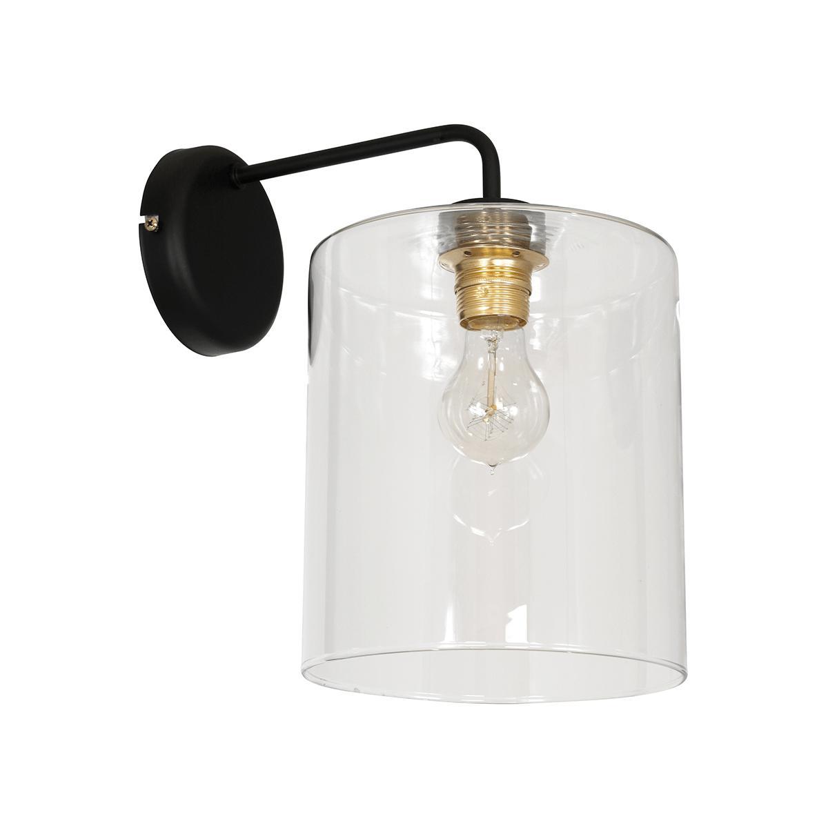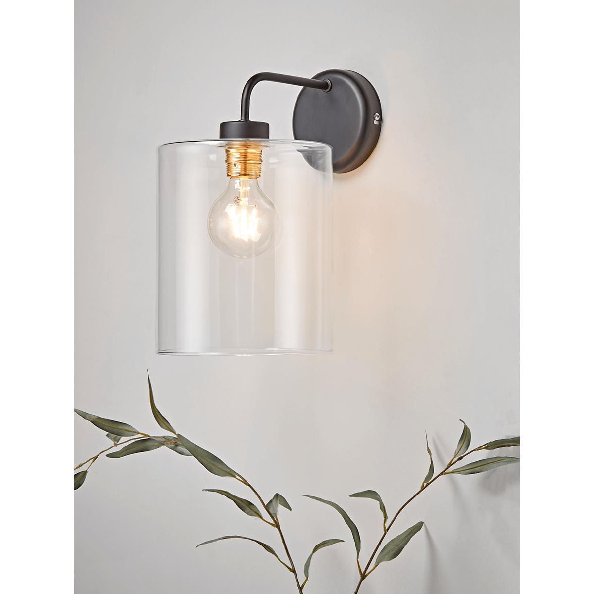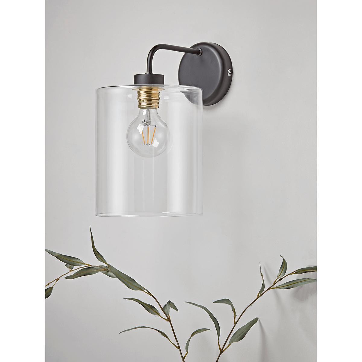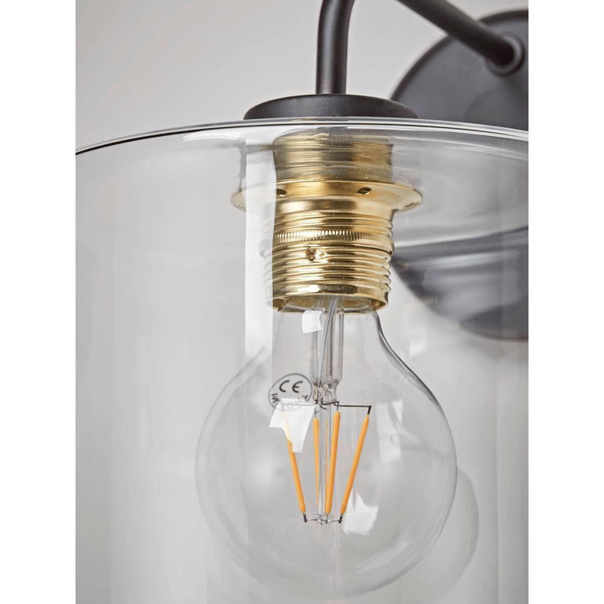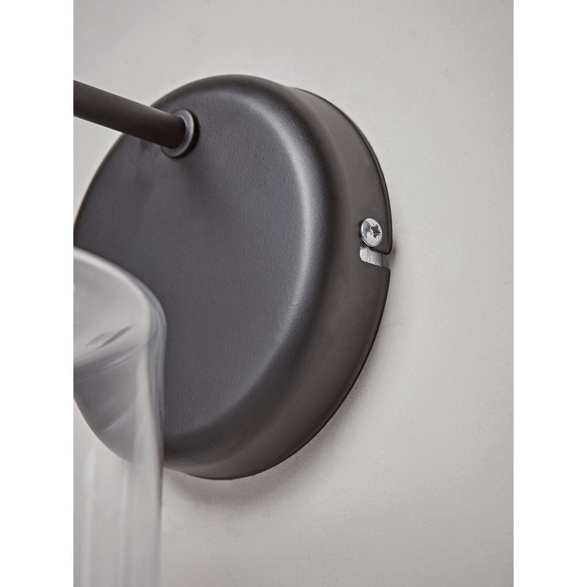 Expertly crafted in high quality glass in a cylindrical shape and featuring a black iron arm, this wall light will add style to your living space. Our wall light is the perfect way to enhance any industrial themed interior, whilst adding light and warmth to the room.