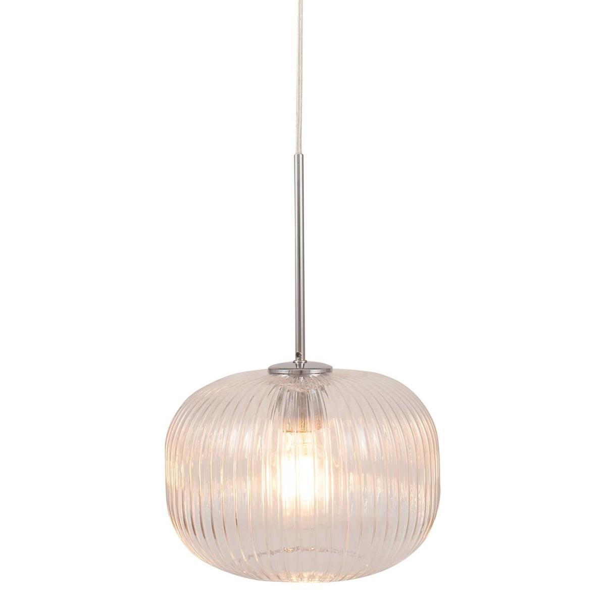 Design. Glass withribbed detailing has a modern feel thatstill remainstimeless. The Glass Silver Pendant is the perfect choice for anyone with a traditional or modern home and would look stunning placed over a breakfast bar or in a hallway.