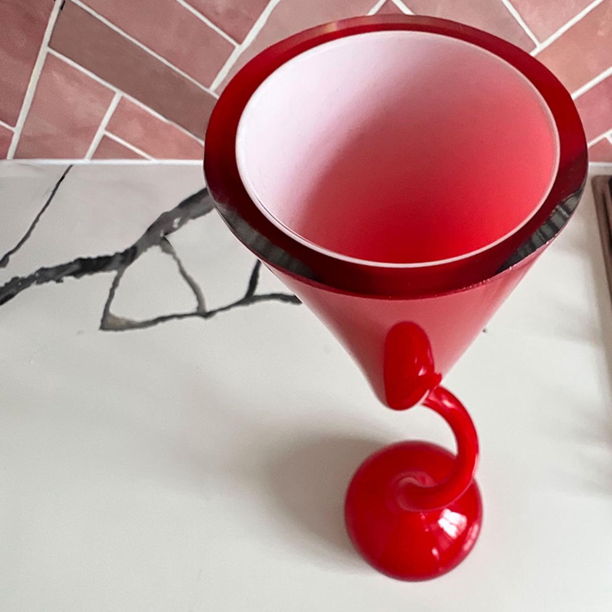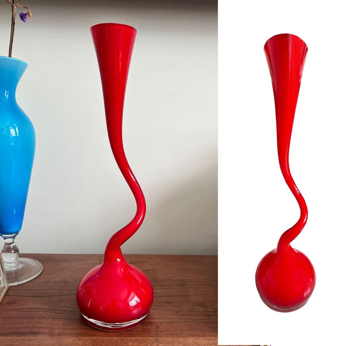 One of a kind vintage red twirl glass vase. A unique piece for your home.