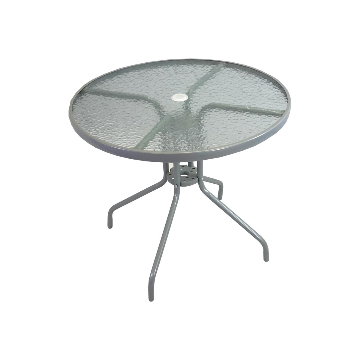 Made from grey powder coated steel with a glass top, this table is highly specified to offer quality at an affordable price. If your existing 6 or 8 piece set table has become past its best, you can buy a replacement without having to rebuy the whole set. The table top is made from reinforced glass with a hole for the parasol to be supported. Assembly is straight forward.