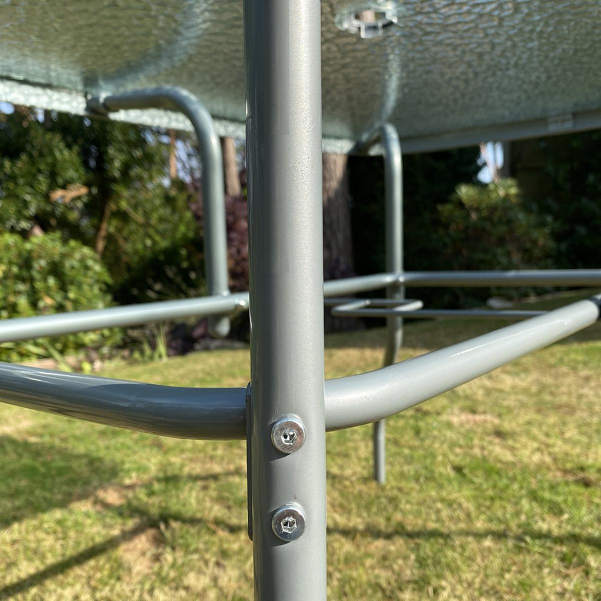 Made from grey powder coated steel with a glass top, this table is highly specified to offer quality at an affordable price. If your existing 6 or 8 piece set table has become past its best, you can buy a replacement without having to rebuy the whole set. The table top is made from reinforced glass with a hole for the parasol to be supported. Assembly is straight forward.