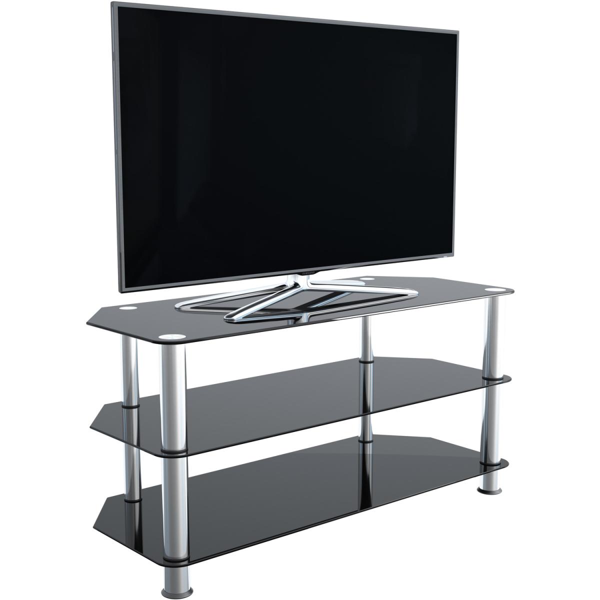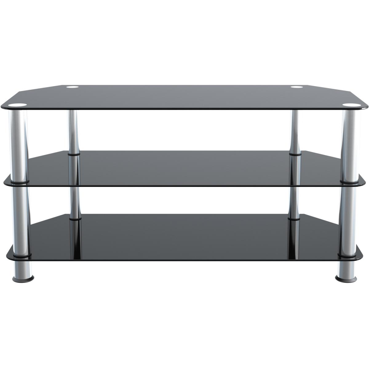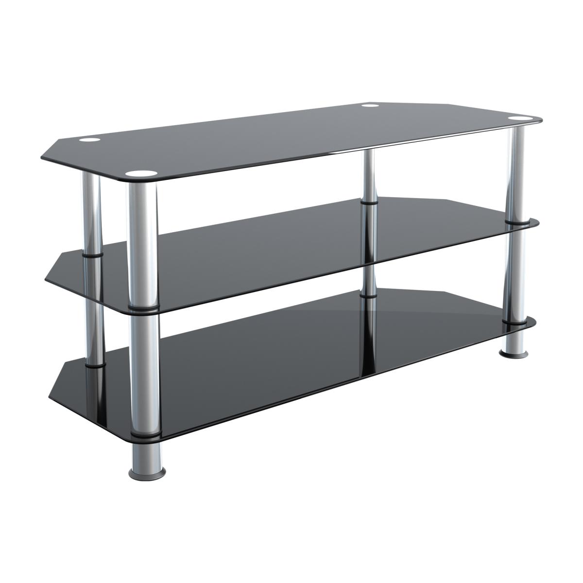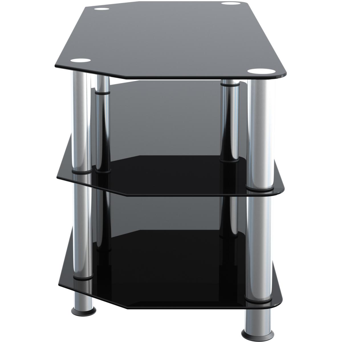 A sturdy, modern home for your TV and accessories. The black tempered safety glass and durable stainless steel legs will modernize any space and can be placed against a flat wall or in the corner of a room. Your AV equipment can be organised on the lower two shelves, capable of holding up to 20kg each. Please note Maximum TV sizes are given as a recommendation only and do allow for some screen overhang, the exact dimensions of the TV's pedestal feet should be checked to ensure desired fit prior to purchase.