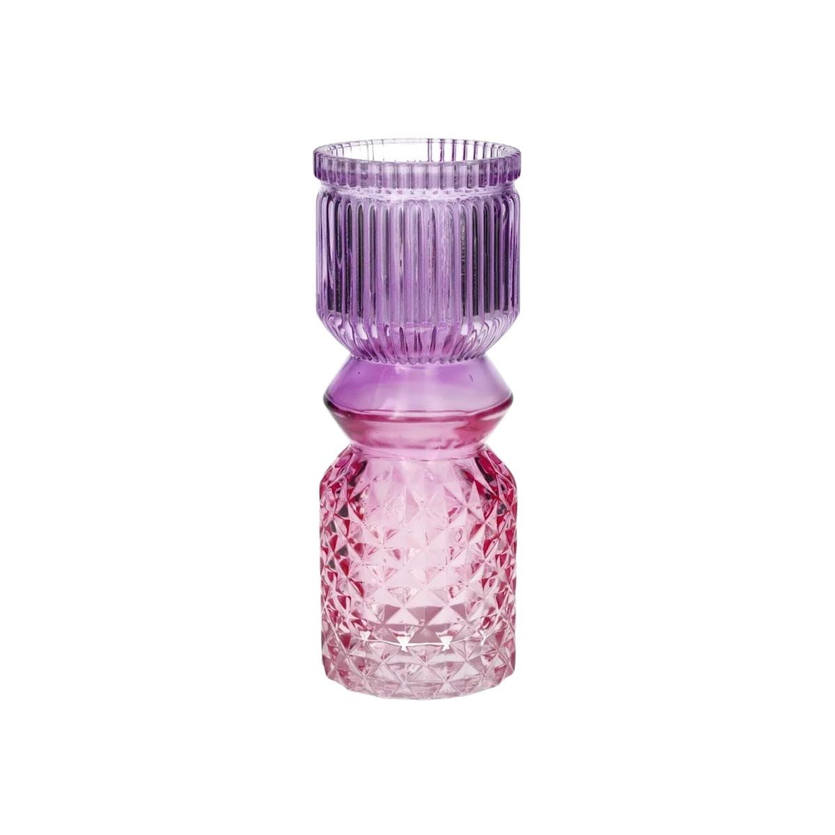Elevate your home decor with this stunning two-tone pink and purple glass vase, featuring a pink base and purple top that adds a touch of elegance to any space. Its unique design make it a perfect centerpiece for your dining table or a stylish accent for your living room. This vase not only showcases your favourite flowers beautifully but also serves as a striking decorative piece on its own.