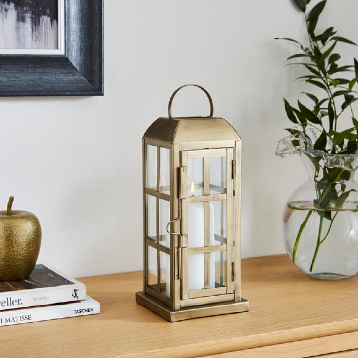 I love this lantern for its versatile and timeless design, making it a great addition to both modern and rustic interiors. Its clear glass panels and brass finish lend a warm, inviting glow, perfect for creating cosy corners or highlighting a feature on a sideboard or mantelpiece. It works well paired with pillar candles and can even be styled with seasonal decorations like fairy lights or greenery for a personalised touch. For practical styling tips, place it on a tray alongside other candles or decorative objects to keep a tidy look, and consider grouping a few different sizes for visual interest. This lantern is a handy piece that adds a layer of warmth and charm to any living space.