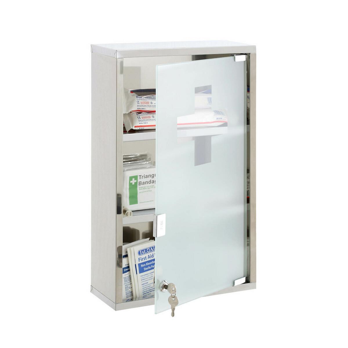 This sleek medicine cabinet features a strong lock and key to keep its contents safe and secure. Product Dimensions H51 x W30 x L12 cm. This product will be dispatched by one of our trusted suppliers. You’ll be contacted by their selected courier about your delivery.