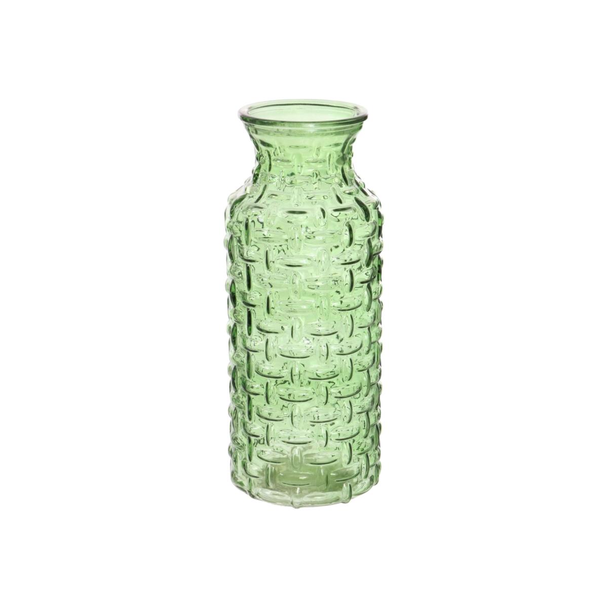 Clear glass vase, woven embossed pattern, great for fresh or artificial flower arrangements. use as a centrepiece or on a side table. Create stunning displays with bright colours & greenery.