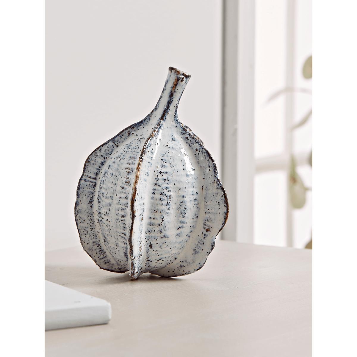 I really like this piece because its glazed ceramic finish adds a subtle shine that works beautifully in contemporary or minimalist interiors. The seedpod shape brings an organic touch, making it an interesting focal point on a clean sideboard or mantelpiece. It pairs well with natural materials like wood or stone and can be styled alone for a pared-back look or alongside other ceramics and plants for a more layered aesthetic. For practical tips, try placing it at eye level on a shelf or console and consider grouping it with smaller sculptures or decorative objects to create visual interest without clutter. Its versatile design makes it suitable for both modern and more traditional spaces, adding a sculptural element that elevates the overall decor.