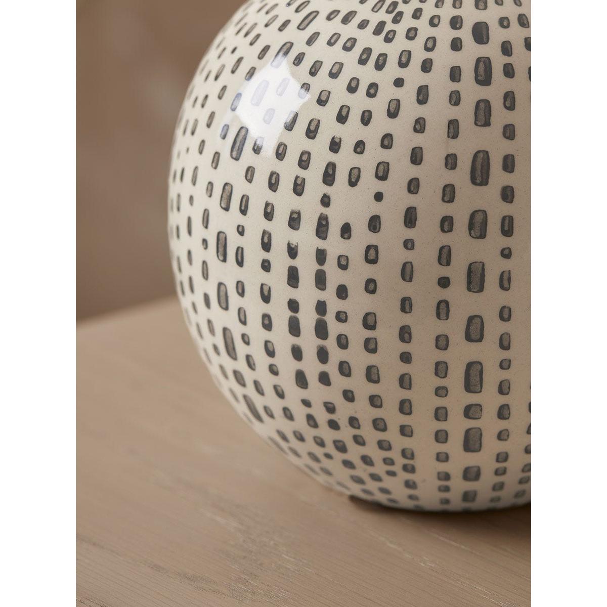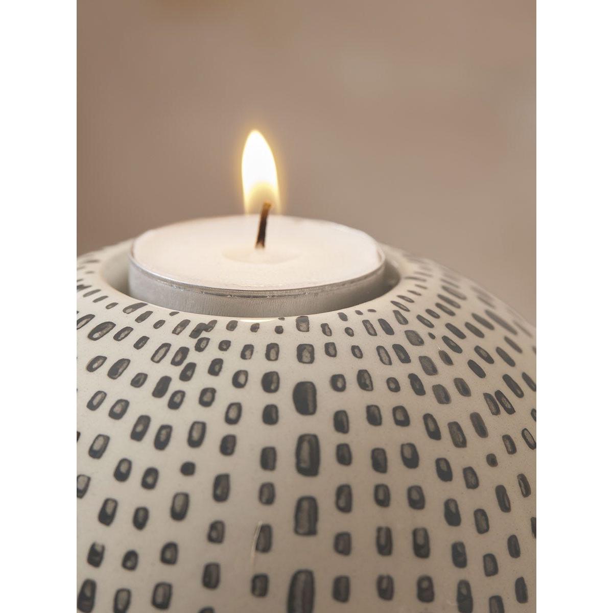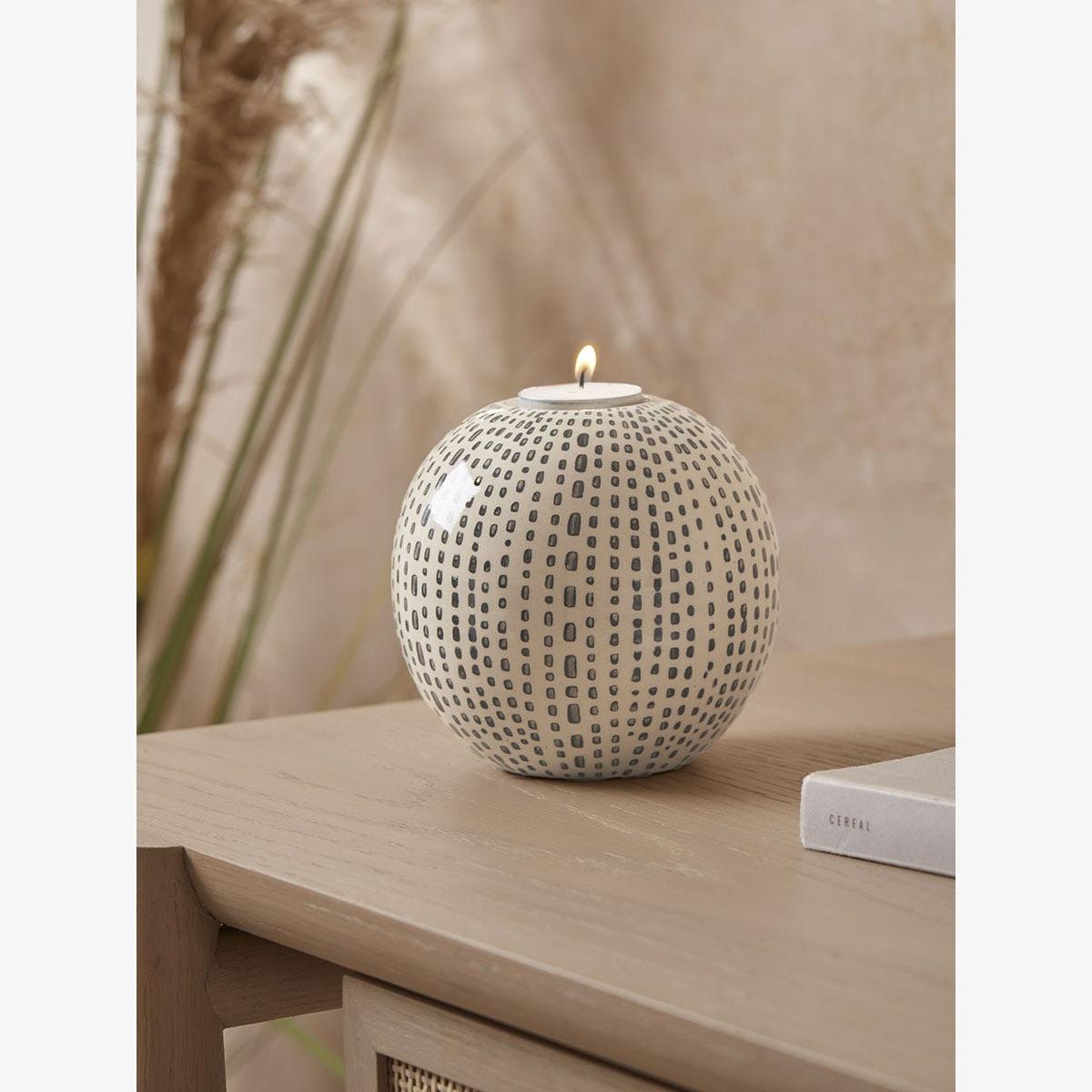 Crafted from ceramic, add a gentle warm glow to your home with this tealight holder. Dainty dots sit in horizontal lines, adding contrast to the soft sphere shape for an elegant and modern finish. Place on your sideboard, on a shelving unit or the middle of your dining table to add some subtle detailing to your home.