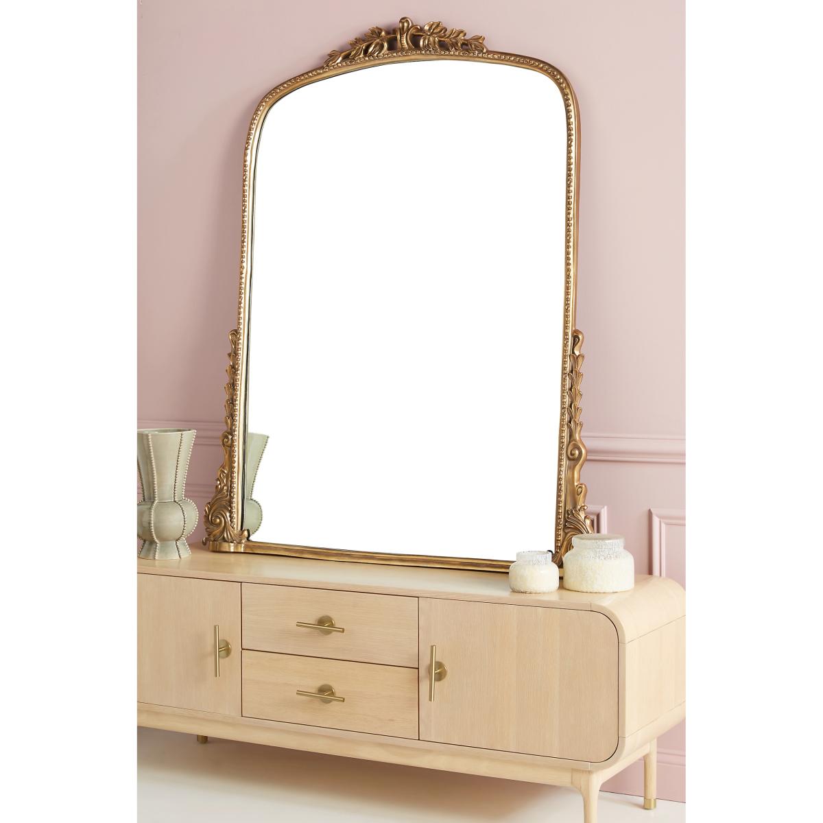 Stunning, vintage-inspired, and social-media-famous, the Gleaming Primrose Mirror is our bestselling style of all time. It's an icon, beloved for its exquisite details, including elegant adornments along its apex and edges. Available in a wide range of sizes, shapes, and finishes to suit and magnify petite nooks and grand interiors alike, it reflects the best of your space (and your taste!), wherever it's placed. Due to the handcrafted nature of this piece, minor variations in the reflection can occur along the edges of the glass. Gleaming Primrose Mirror by Anthropologie in Brown Size: Large