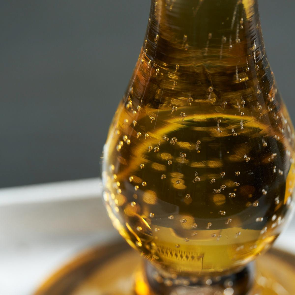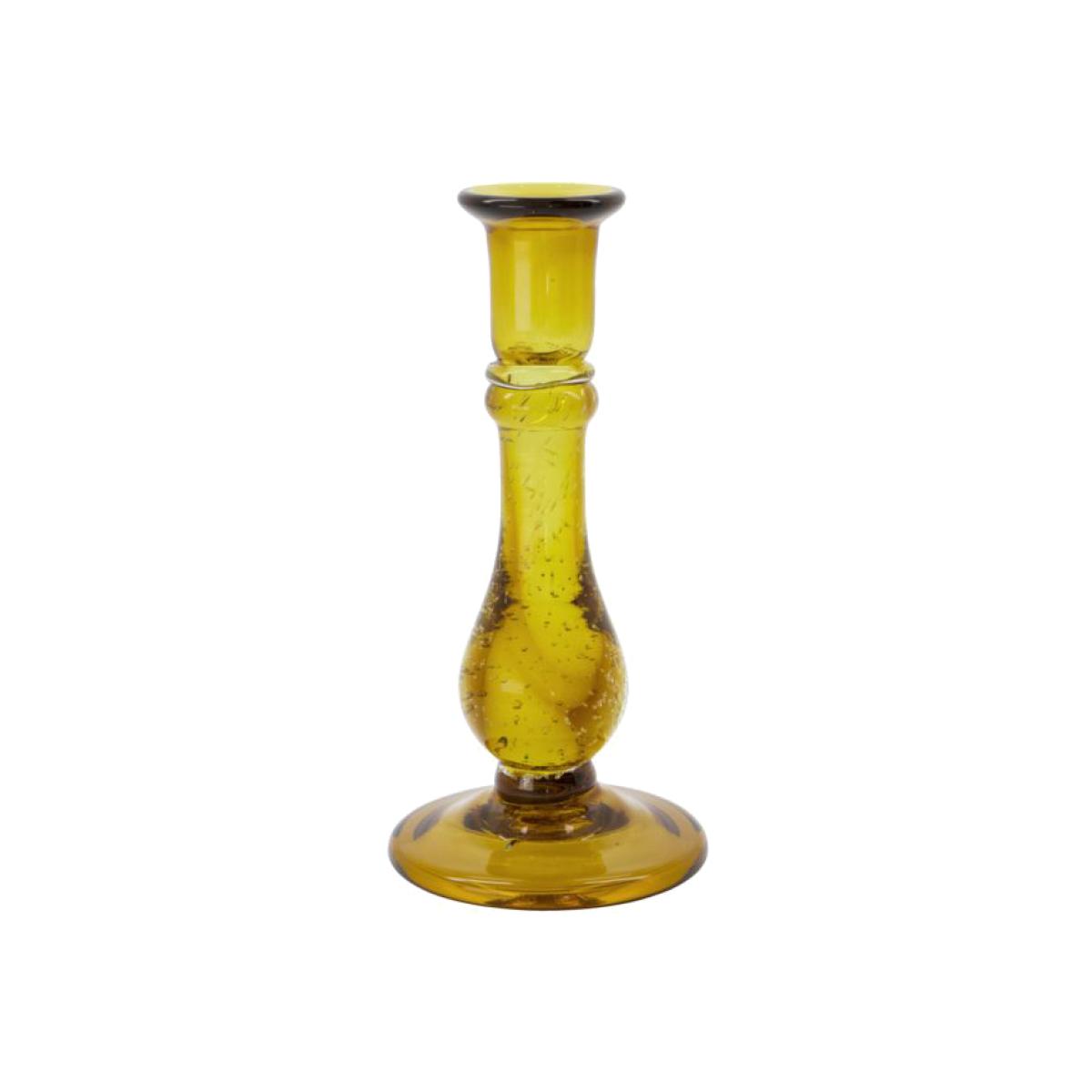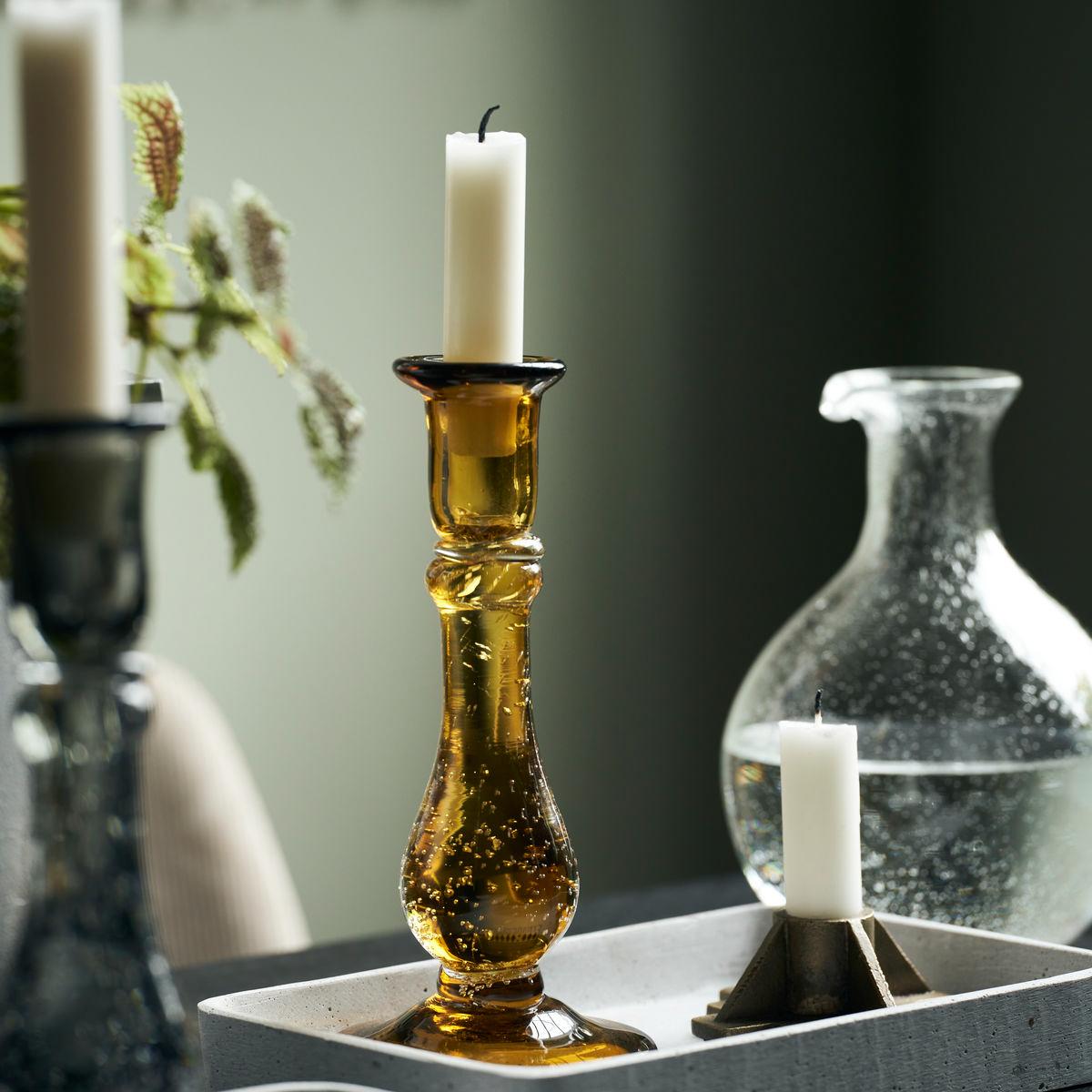 The Glee candlestick 22 cm by Danish brand House Doctor is a handmade candlestick in glass where the colour and finish can vary, making each candlestick unique. The beautiful air bubbles in the design give the candlestick a lighter feeling despite the solid glass.