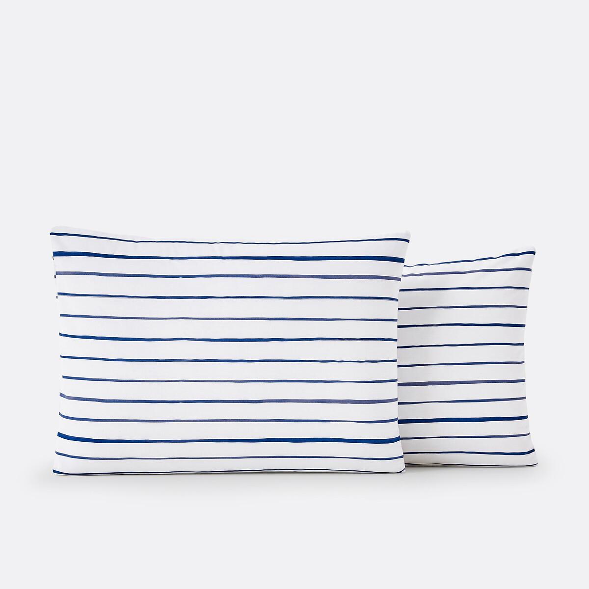 Check out this ocean-inspired bedding with nautical stripes bringing an invigorating, contemporary feel to this pillowcase!Cotton is part of our daily lives. We love it for its suppleness and softness. Easy Care, it is ideal for the beds of young and old alike!Product Details • 100% cotton • 144 thread count • Nautical stripe print on white background. Care Advice • Machine washable at 60°C • By washing your laundry at 40°C instead of 60°C, you limit energy consumption. Dimensions • 50 x 70cm: Rectangular pillowcase • 63 x 63cm: Square pillowcase • OEKO-TEX® Standard 100. Standard 100 certification by OEKO-TEX® tests textile products for harmful substances via an independent, international label.