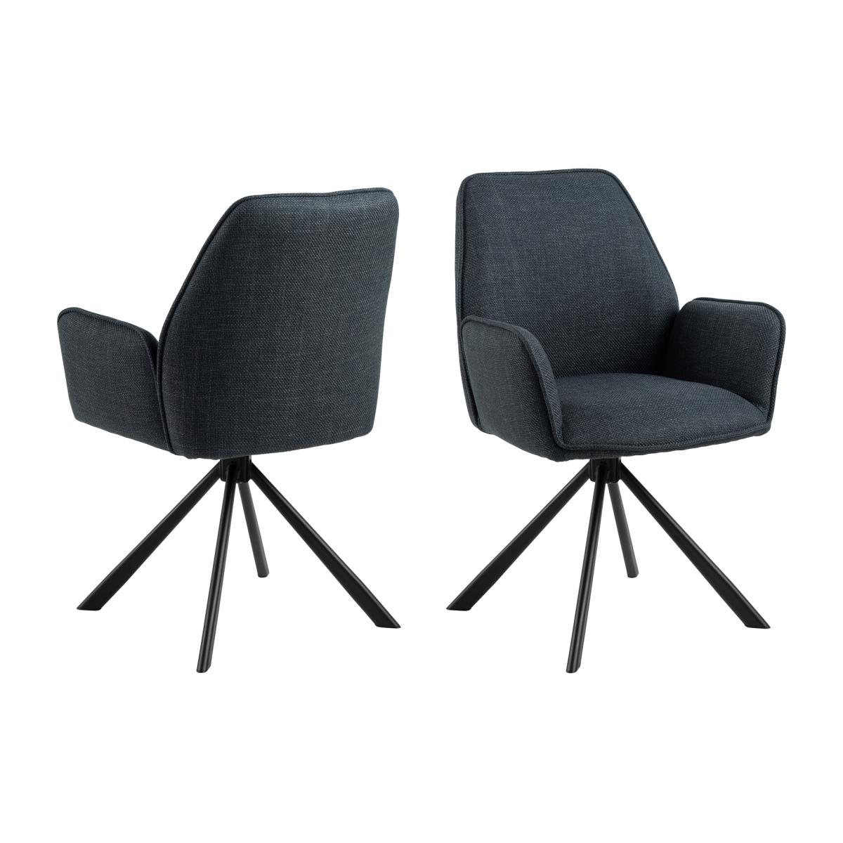 Elevate your dining experience with the Glenda Dining Chair. This contemporary dining chair seamlessly combines style and functionality, adding elegance to your space. Wrapped in a chic, two-tone anthracite fabric, this chair features elegant piping details that enhance its modern look. The standout black 4-star swivel base not only adds a touch of sophistication but also ensures smooth mobility, making it perfect for lively dining rooms. Crafted with durable Basel fabric and a rough powder-coated steel base, this chair promises both comfort and resilience, making it an ideal choice for those looking to enhance their modern dining space.