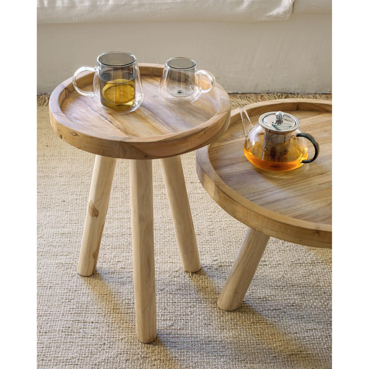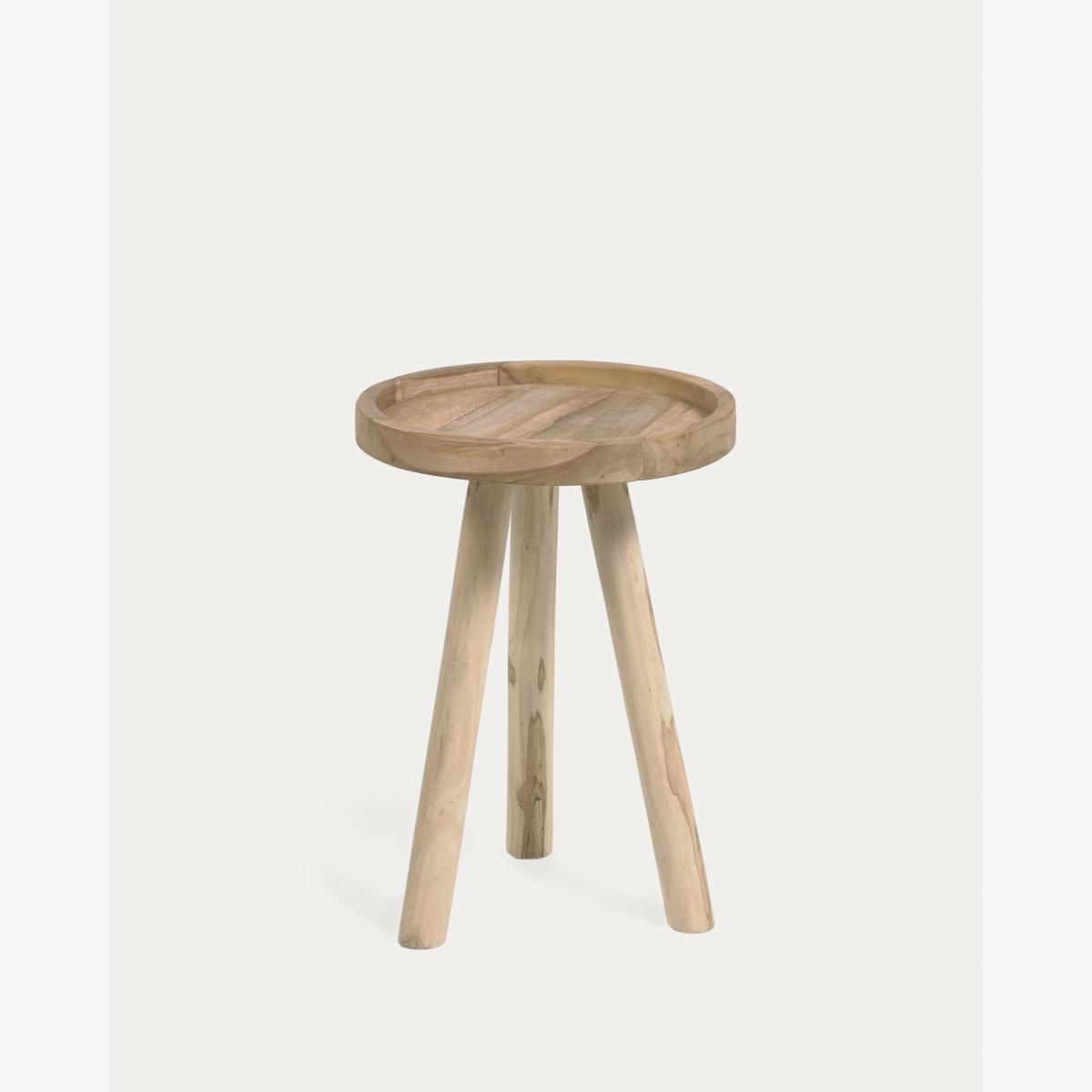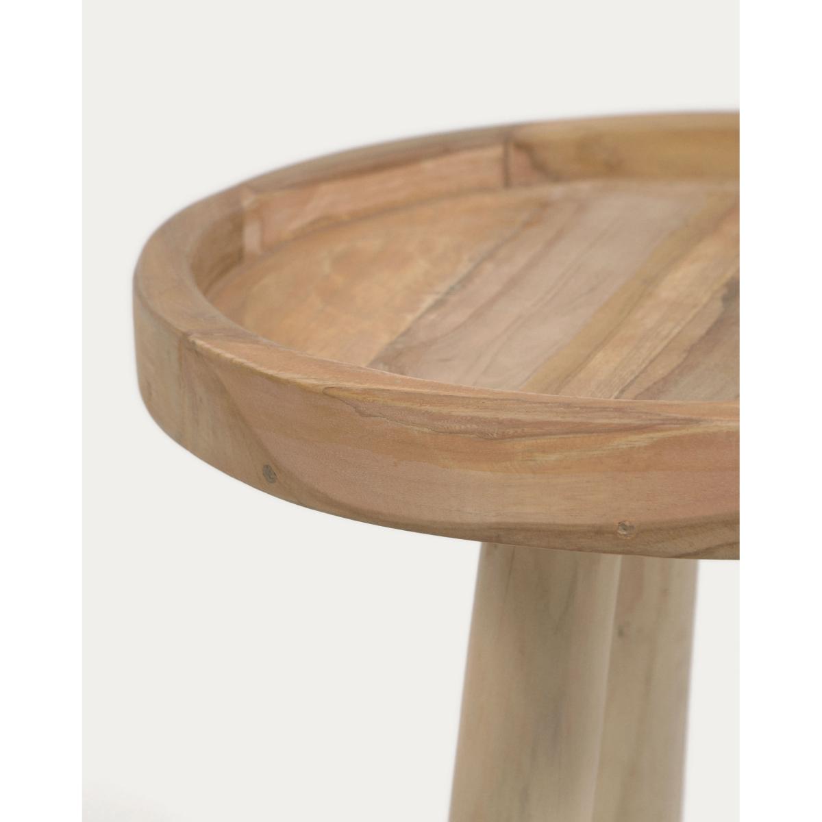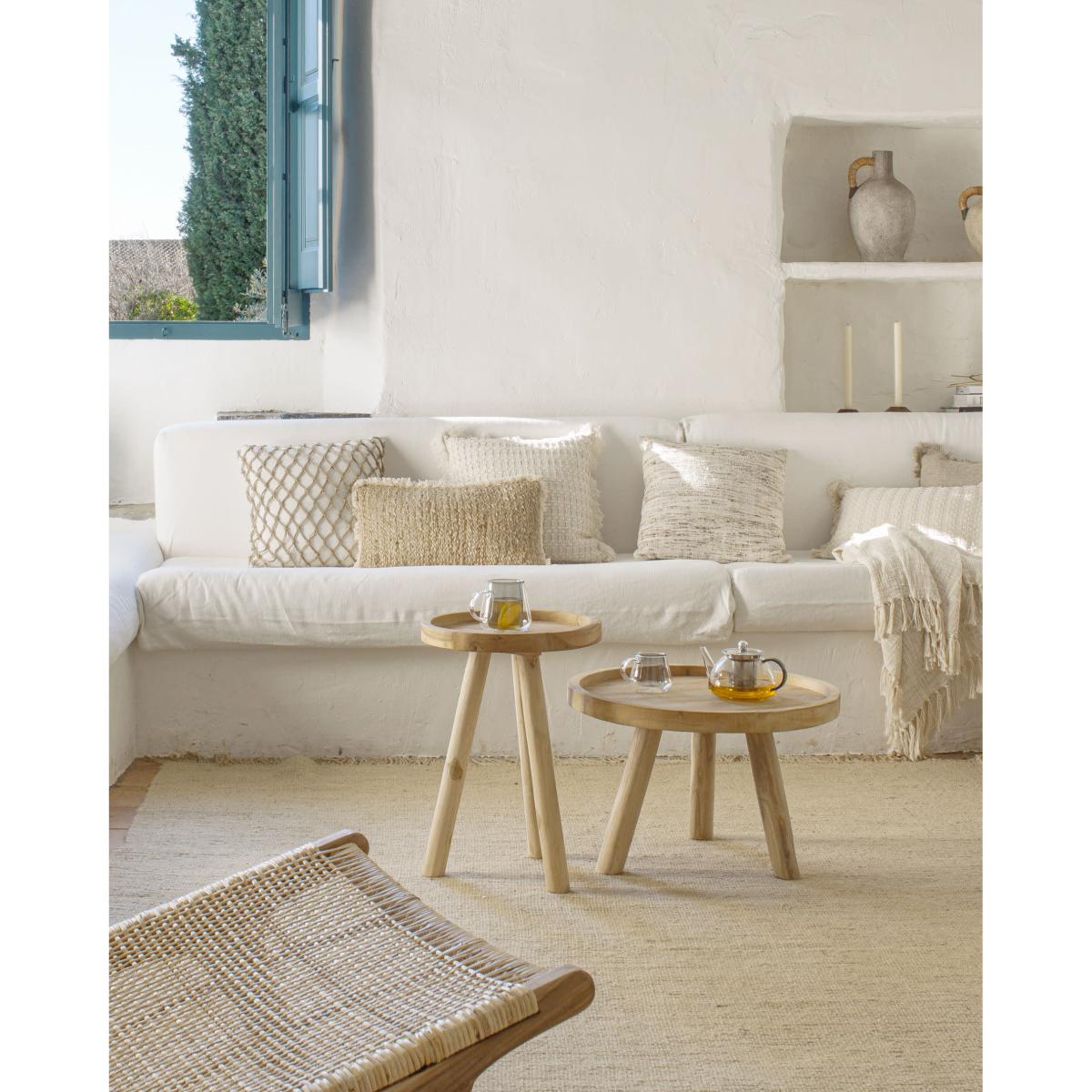 I’m a fan of this little teak side table for its clean lines and natural tone - it suits everything from Scandi-minimal and coastal schemes to more rustic or boho living rooms. Its compact Ø 35 cm top makes it ideal beside an armchair or sofa without overwhelming tight spaces. Styling-wise, I’d pair it with a simple ceramic table lamp or a small stack of art books and a single stem in a slender glass vase. Because the top has a shallow lip, it also works well for corralling candles or holding a morning coffee tray without anything slipping off.