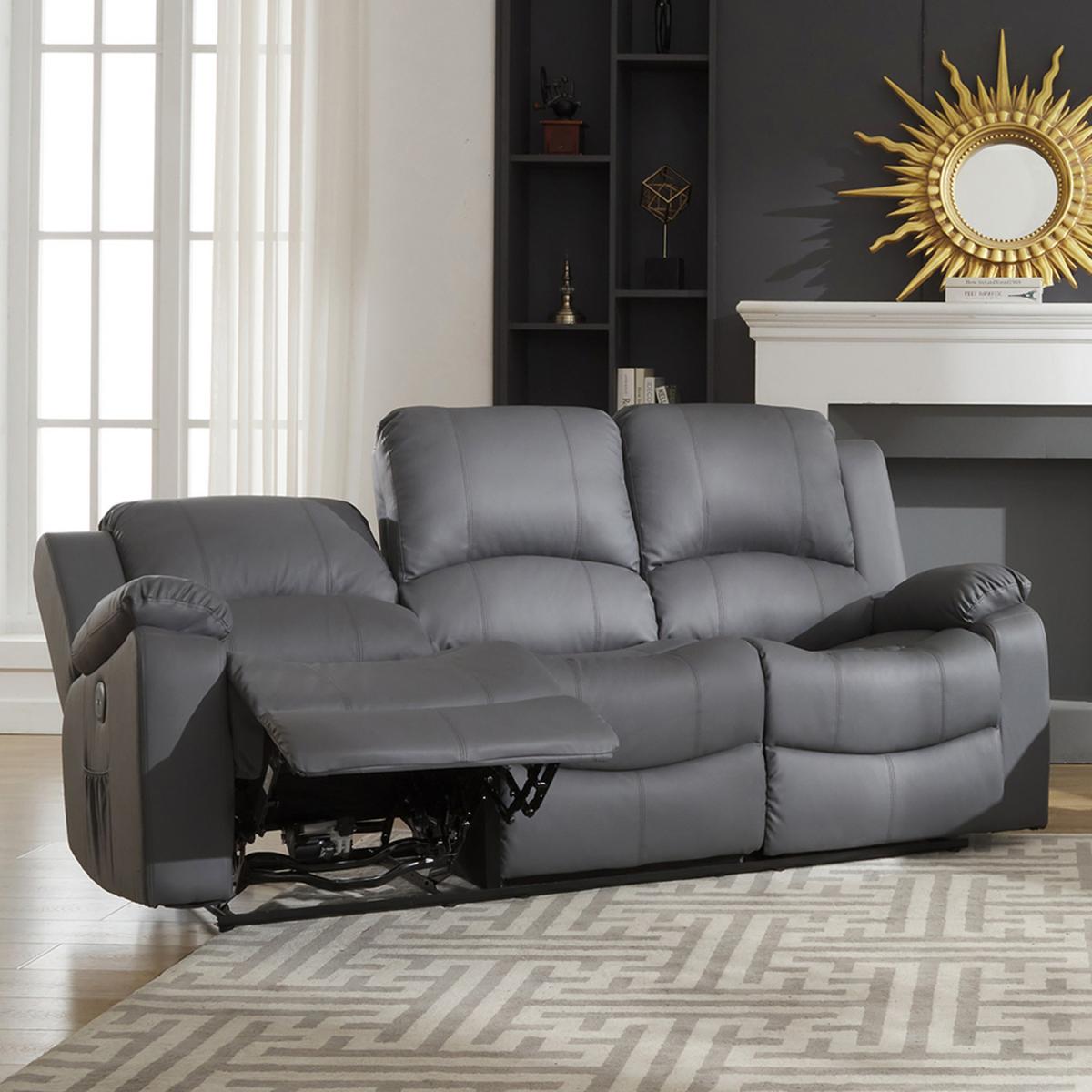 Luxuriate in Comfort with the Glendale 3-Seat Electric Reclining Sofa!The Glendale 3-Seat Electric Reclining Sofa is your ticket to unmatched relaxation and modern convenience. Carefully crafted from solid, hard wood, this sofa blends lasting durability with timeless elegance. Its soft and durable bonded leather upholstery, with faux leather used on lower stress areas, not only adds a touch of sophistication to your decor but also stands up to the rigors of daily use. Sink into the sumptuous comfort of the pocket-sprung and foam-filled interior, and effortlessly adjust your seating position with the integrated electric reclining mechanism. For added convenience, the Glendale 3-Seat Electric Reclining Sofa features an integrated USB charging point, ensuring that your devices remain powered up while you relax. It pairs seamlessly with the Glendale 2-Seat Electric Reclining Sofa, offering a versatile and inviting seating arrangement for your living room. Transform your living space into a haven of comfort and style with the Glendale 3-Seat Electric Reclining Sofa. Experience luxury at its finest!