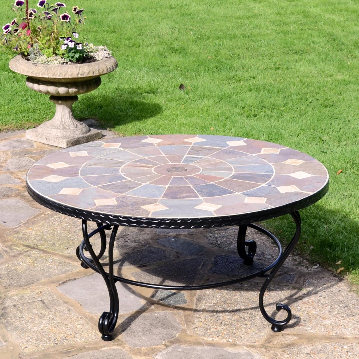 I love this 91cm coffee table for its versatile design and the way it seamlessly combines practicality with style. Its brown tone makes it easy to incorporate into both contemporary and traditional outdoor spaces, while the mosaic top adds a touch of visual interest without overwhelming your setting. It works particularly well in cosy garden corners, patio areas, or even as a centrepiece in a covered outdoor lounge. For styling tips, layer it with outdoor cushions and lanterns for a relaxed vibe, or dress it up with a tray of potted herbs or fresh flowers for a more polished look. Its sturdy yet elegant metal frame ensures it can handle outdoor use, making it a reliable addition to your garden furniture collection.