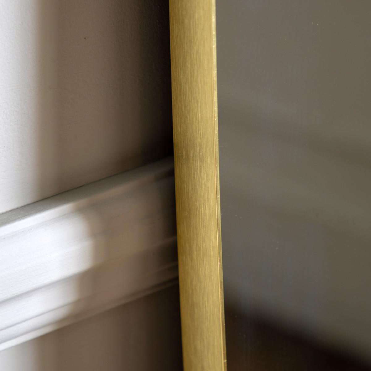 I’m a fan of this gold leaner mirror for its clean, slightly rounded shape and slim frame, which feels modern without shouting for attention. It suits Scandi-inspired schemes, contemporary city pads or even a more eclectic, vintage-leaning lounge. For styling, lean it against a wall beside a low console or chest of drawers and layer in a couple of framed prints up the side. Position it opposite a window to amplify daylight, or use it to bounce light into a darker hallway. Adding a tall plant beside it softens the lines and creates a relaxed, lived-in look.