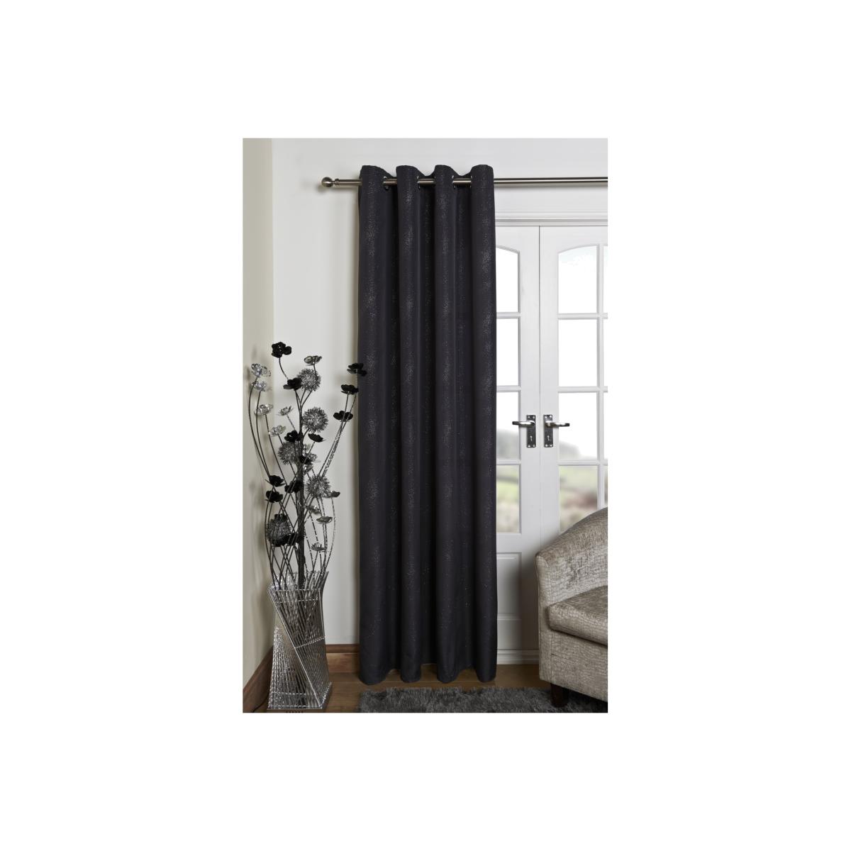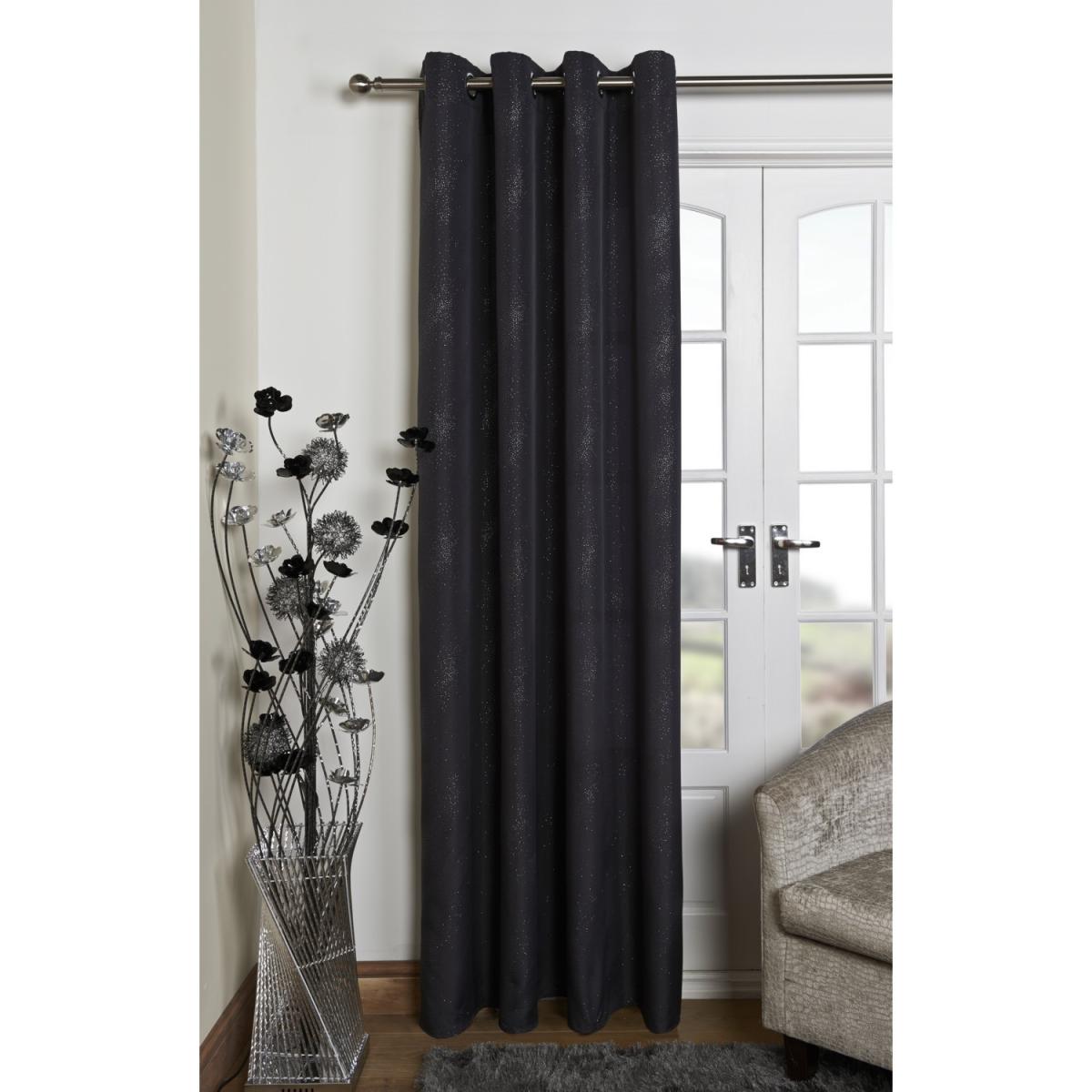 The Glitter Eyelet Panel Single Curtain will add a touch of glamour to any room with the subtle sparkle on a muted backdrop. This single curtain is perfect for pulling over a backdoor or open wardrobe to cover the mundane and everyday aspects of your home with glitter. Buy two and add a touch of sparkle in any room!