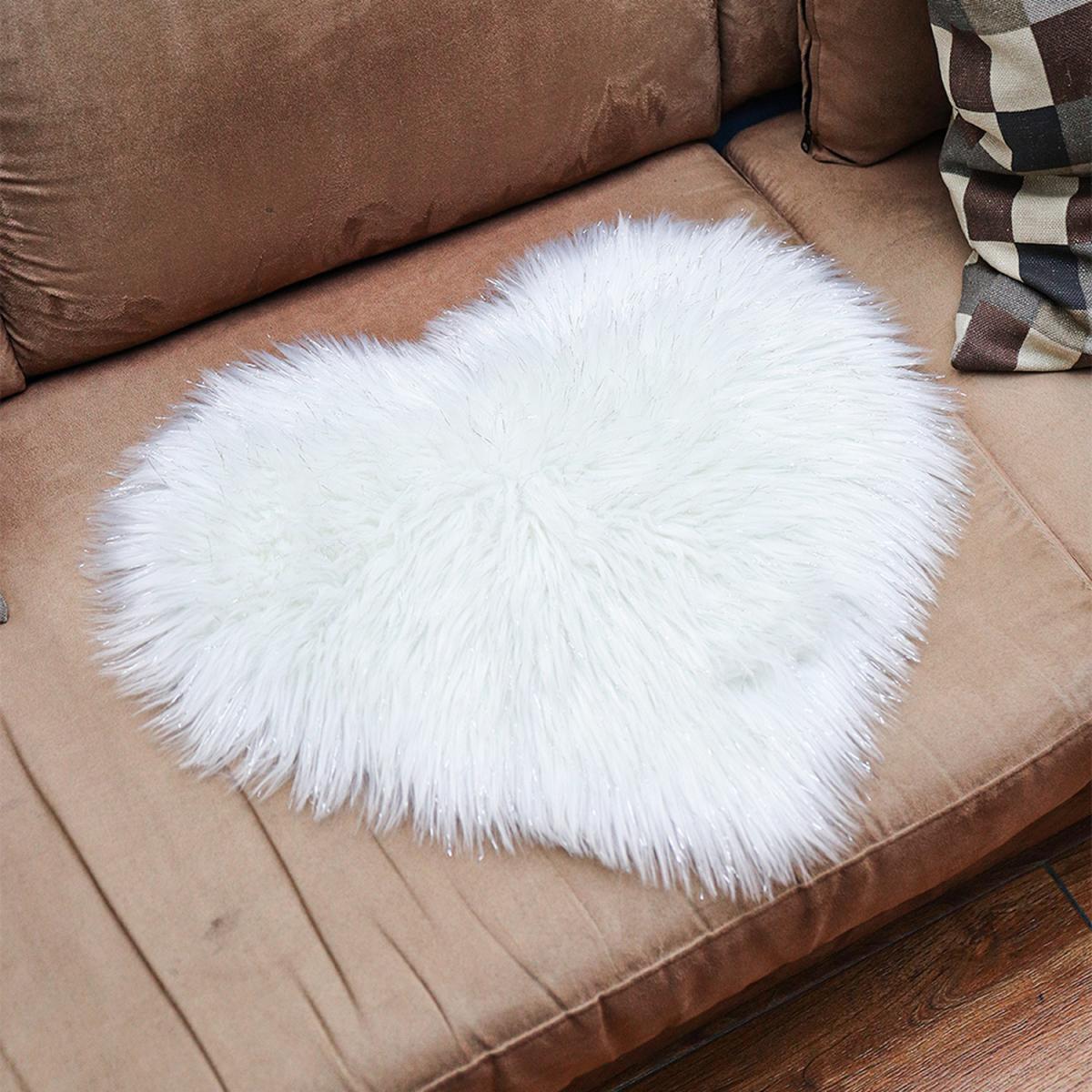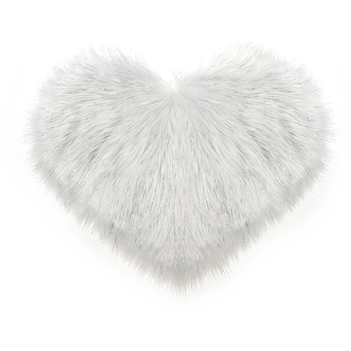 Glitter Heart-Shaped Faux Sheepskin Rug - White