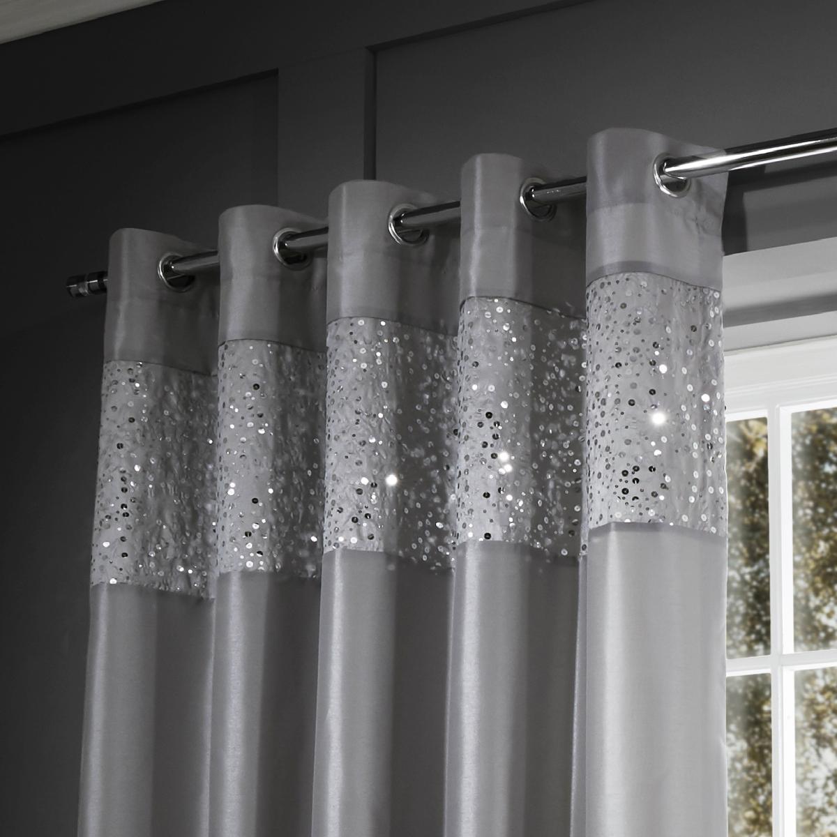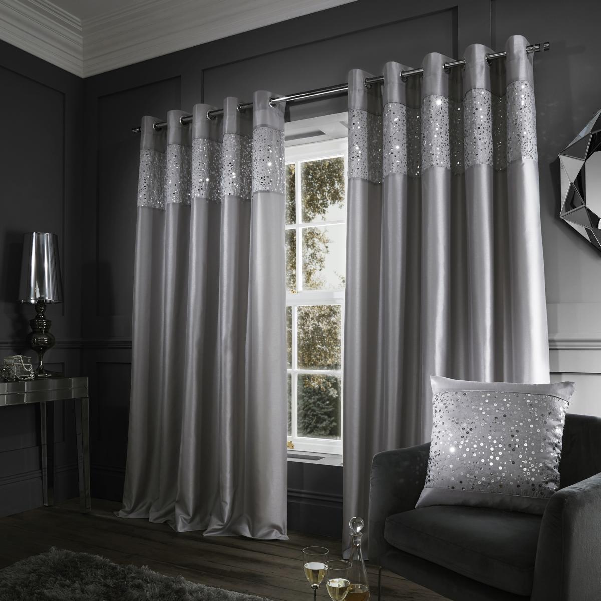 Glitzy Eyelet Curtains - Grey