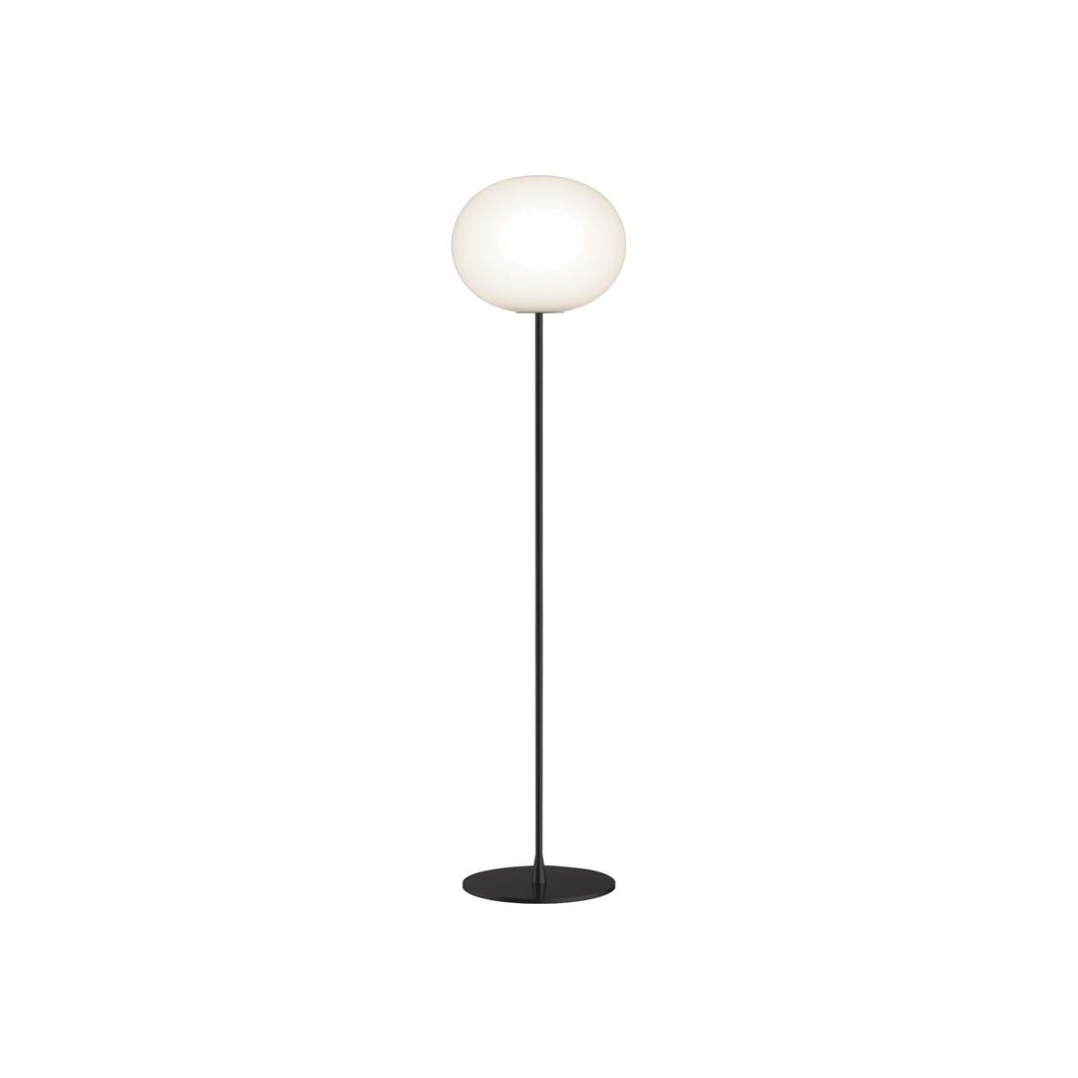 The black Glo-Ball F3 Floor Light forms part of Jasper Morrison's Glo-Ball Collection, created in 1998 to call to mind the radiant glow of a full moon in a clear sky, in a fluid round form crafted from hand-blown, etched white opaline glass. The elegant opaline finish obtains a maximum diffusion of light, with the die-cast aluminium support and matt black stem creating a stable base for the otherwise curved form, fitting easily into any style of space. Jasper Morrison created the Glo-Ball to invoke the otherworldly magic of night-time, with the lamp appearing three dimensional when not lit, and flat as a disc, like the moon, when illuminated. Requires 1 x Max 13W E27 LED bulb (not included).
