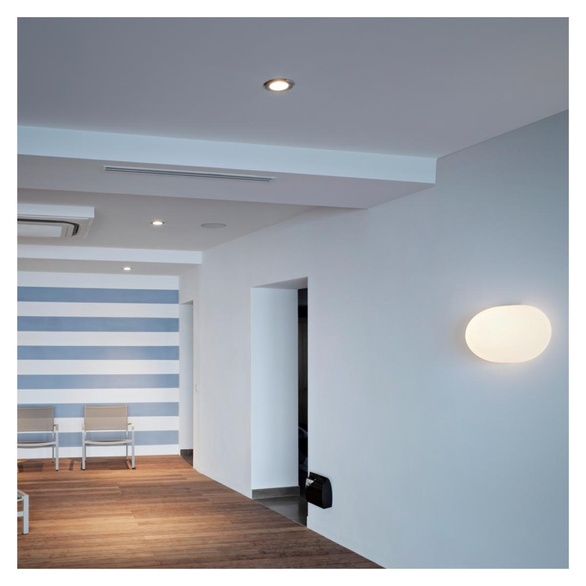 The Glo-Ball Wall Light forms part of Jasper Morrison's Glo-Ball Collection, created in 1998 to call to mind the radiant glow of a full moon in a clear sky, in a fluid round form crafted from hand-blown, etched white opaline glass. The elegant opaline finish obtains a maximum diffusion of light, with the die-cast aluminium support creating a stable base for the otherwise curved form, so you can place it on any wall for an injection of calming light. Jasper Morrison created the Glo-Ball to invoke the otherworldly magic of night-time, with the lamp appearing three dimensional when not lit, and flat as a disc, like the moon, when illuminated. A truly elegant piece of lighting design, the Glo-Ball Wall Light is beautifully simple and would enhance any wall space with its gentle light.