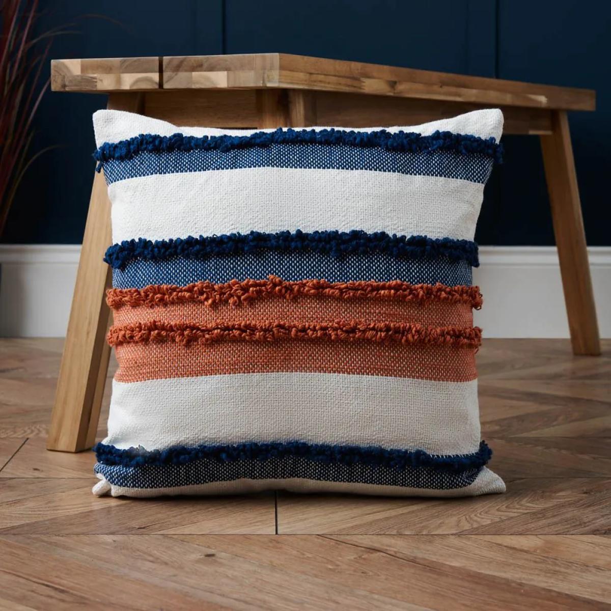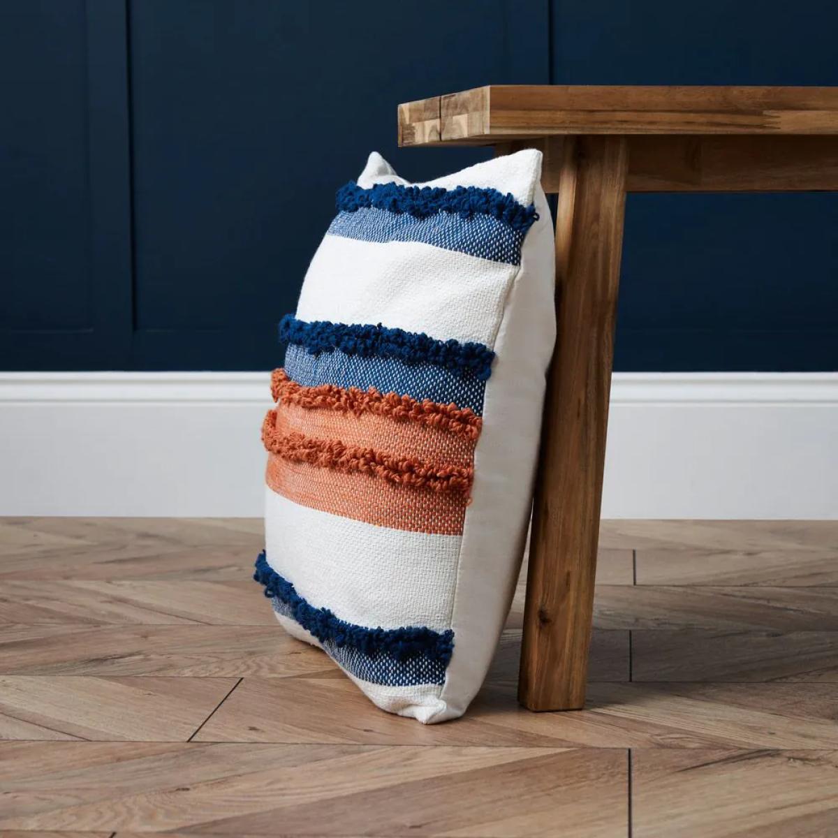 I love this colourful cushion because it adds a lively, textured element to any space. Its multicoloured design makes it versatile - great for injecting personality into neutral-toned sofas or beds. It works particularly well in interiors with a boho or eclectic vibe, but can also complement modern or Scandinavian schemes when paired with more subdued textiles. Practical styling tips include layering it with other cushions in matching or complementary tones, or using it as a statement piece on a simple sofa to introduce pattern and colour without overwhelming the look. Its textured detailing can also be a nice contrast against smooth fabrics, adding visual interest and comfort.