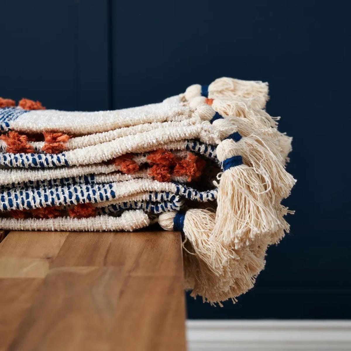 I love this throw because of its cosy, textured look and vibrant multicoloured palette, which instantly adds warmth and visual interest to a space. It works well layered over neutral sofas or beds, bringing a pop of colour and a tactile element to more pared-back interiors. For styling tips, try folding it neatly at the end of a bed or draping it casually over the arm of a sofa for a lived-in feel. Its mixed textures also mean it pairs nicely with other textiles, such as linen or wool, making it versatile for both modern and eclectic interiors. Keep it in reach for chilly evenings and to inject a bit of personality into your scheme.
