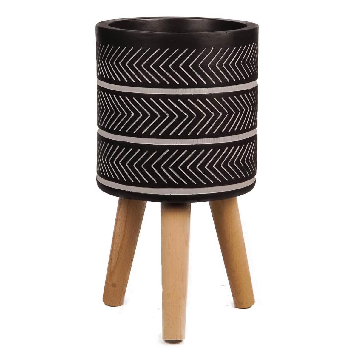This large, Decorative Global Chevon Planter is a beautiful addition to your space, helping you to bring a touch of the outdoors in. This dark coloured planter is finished with a chevron-inspired etched design in a light tone for an amazing contrasting look. Placed upon three wood-effect legs for a natural touch, this planter is ideal for use in the living room, hallway, bedroom, or anywhere else you think can benefit from this gorgeous planter and whatever you decide to place in it.
