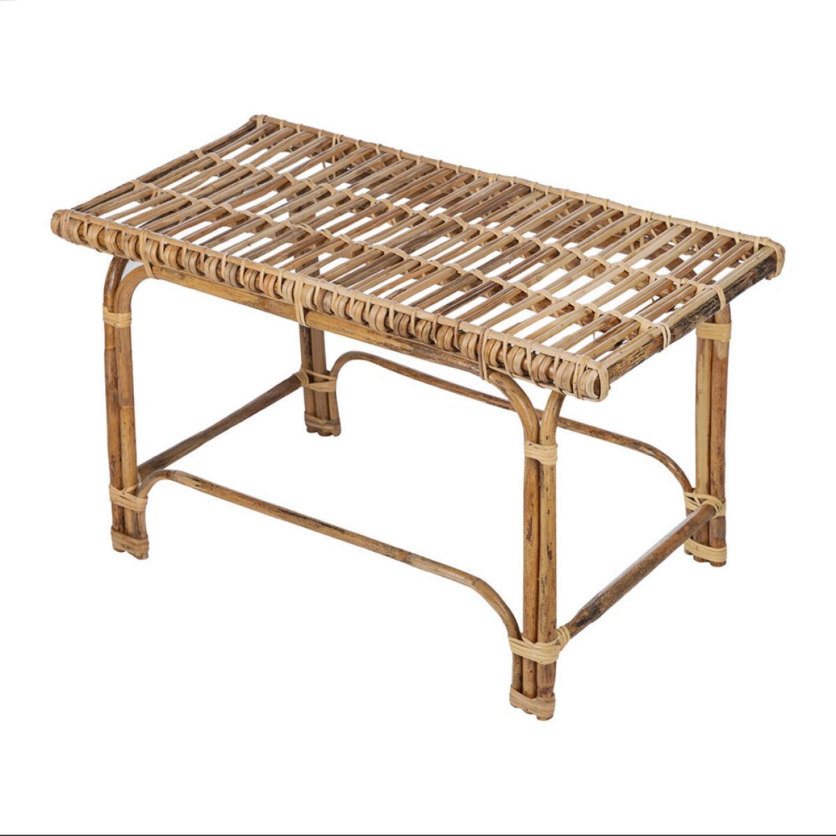 Add a natural finishing touch to your interior with this small cane table from Global Explorer. Inspired by vintage bamboo furniture, it is perfect for using as a decorative side table for a boho look and feel.