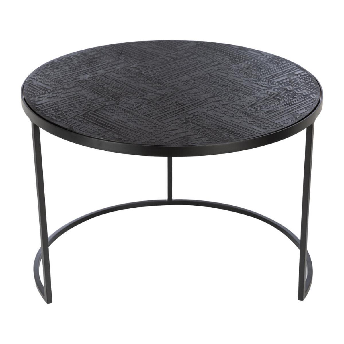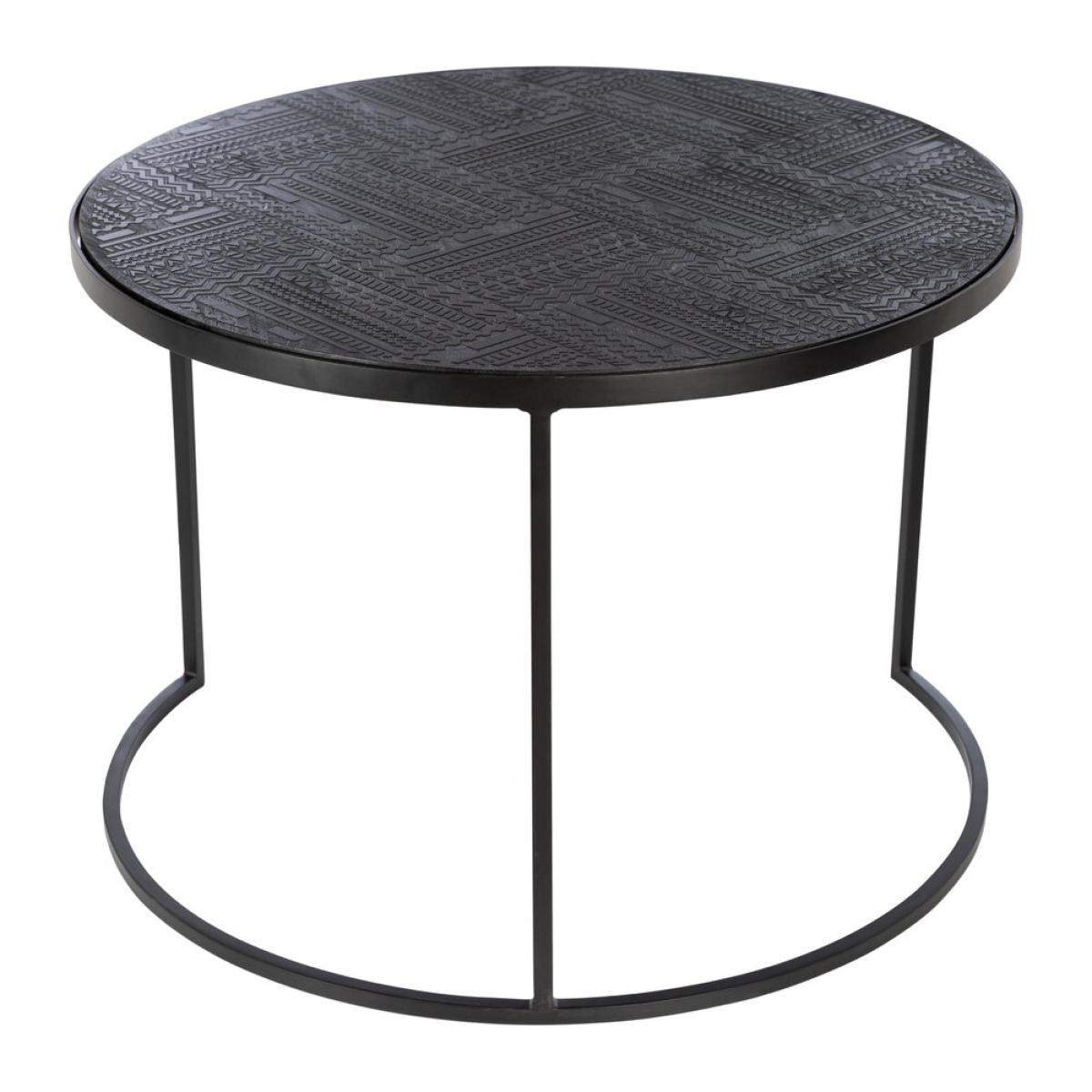 I really like this coffee table for its sleek, modern design and subtle detailing - the textured top adds visual interest without overwhelming the space. It works particularly well in contemporary or minimalist interiors, where clean lines and understated elegance are key. For practical styling, you can keep the surface clear for a tactile, uncluttered look or add a few curated accessories like a small vase or a stack of books to create a cosy focal point. Its black frame ensures it complements a range of colour schemes, making it versatile enough for living rooms with neutral palettes or bold colour pops. Overall, it's a statement piece that combines style and function seamlessly.