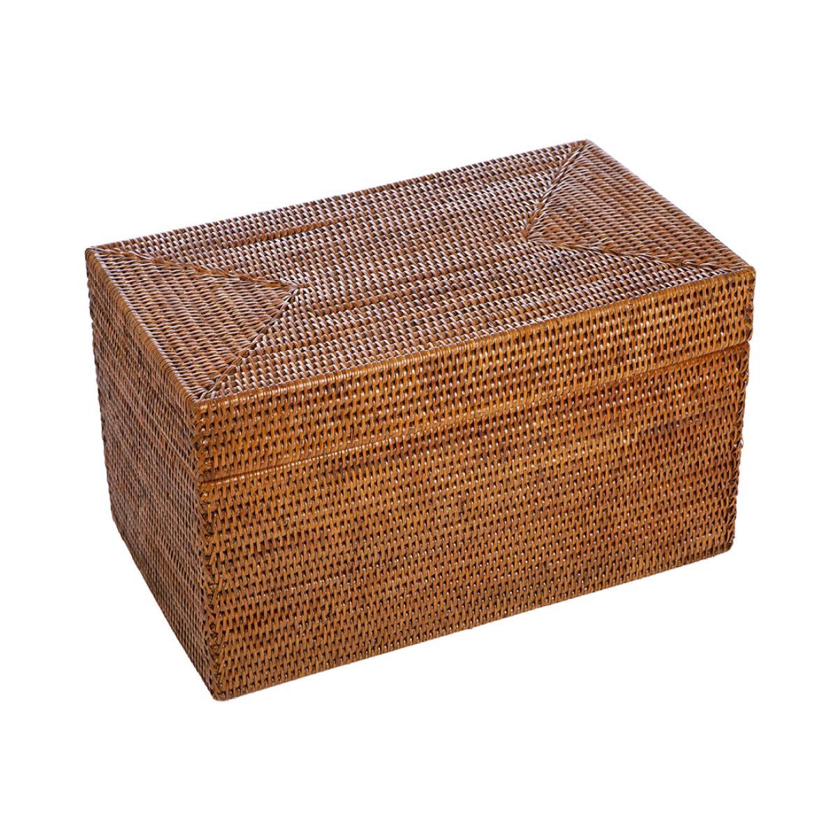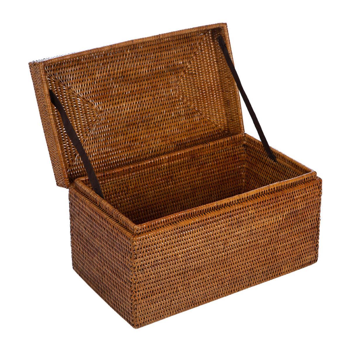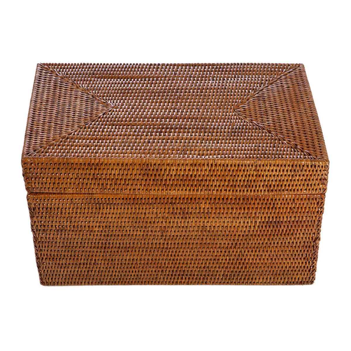 I love this rattan chest for its sturdy yet natural feel, making it a versatile piece in both modern and more traditional interiors. The dark tone adds depth, ideal for grounding brighter spaces or complementing darker wood accents. It works well as a storage solution in living rooms or bedrooms, useful for hiding away clutter while adding texture. For styling tips, consider placing a stack of books or a tray on top to turn it into a practical surface, or mix it with woven or textured accessories for a layered, tactile look. Its size and style make it a functional aesthetic addition, particularly in schemes that embrace natural materials and earthy tones.