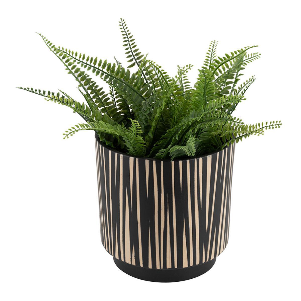 I love this striped plant pot for its bold, contemporary design that instantly adds visual interest. It works particularly well in modern, minimalist interiors or Scandinavian-inspired spaces where clean lines and monochrome palettes prevail. The graphic stripes bring a touch of texture without overwhelming, making it versatile for both small plants and statement foliage. Practical styling tips include pairing it with a variety of greenery for contrast or placing it on a neutral shelf or table to let the pattern stand out. Its durable finish also makes it suitable for both indoor and outdoor spaces, adding a touch of global-inspired style wherever you choose to use it.