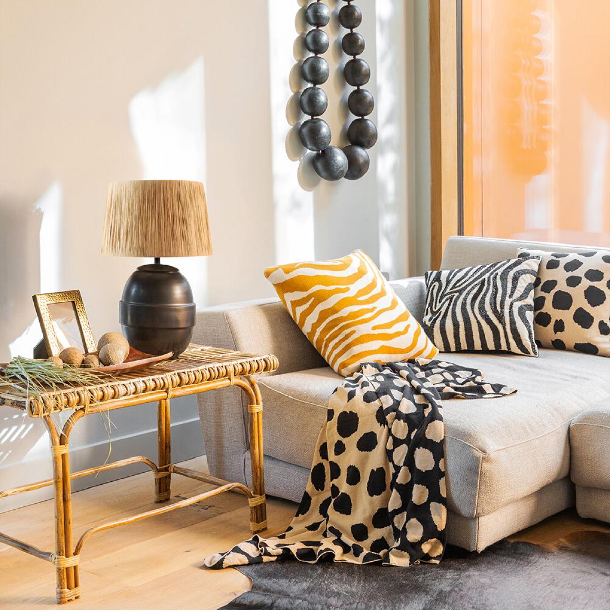 Add a wild touch to your interior with this Tiger Print cushion from Global Explorer. Made from 100% cotton, it features a bold tiger print pattern in yellow and cream tones. Pair with more accessories from Global Explorer to complete the look.