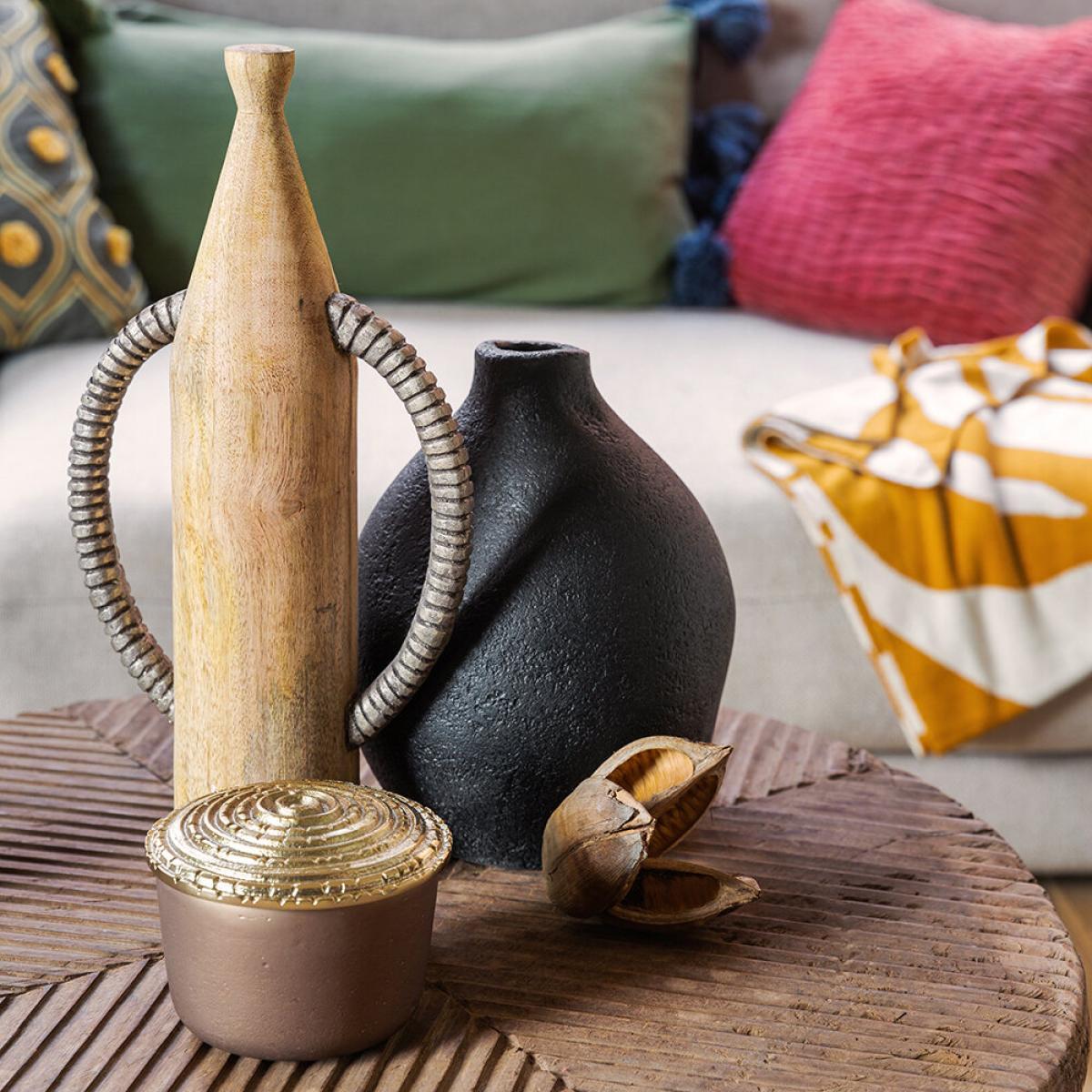 Make a style statement in your living space with the Wooden Bottle object from Global Explorer. Crafted from mango wood, it’s been shaped into a bottle design and finished with carved aluminium handles. Pair with more accessories from Global Explorer to complete the look.