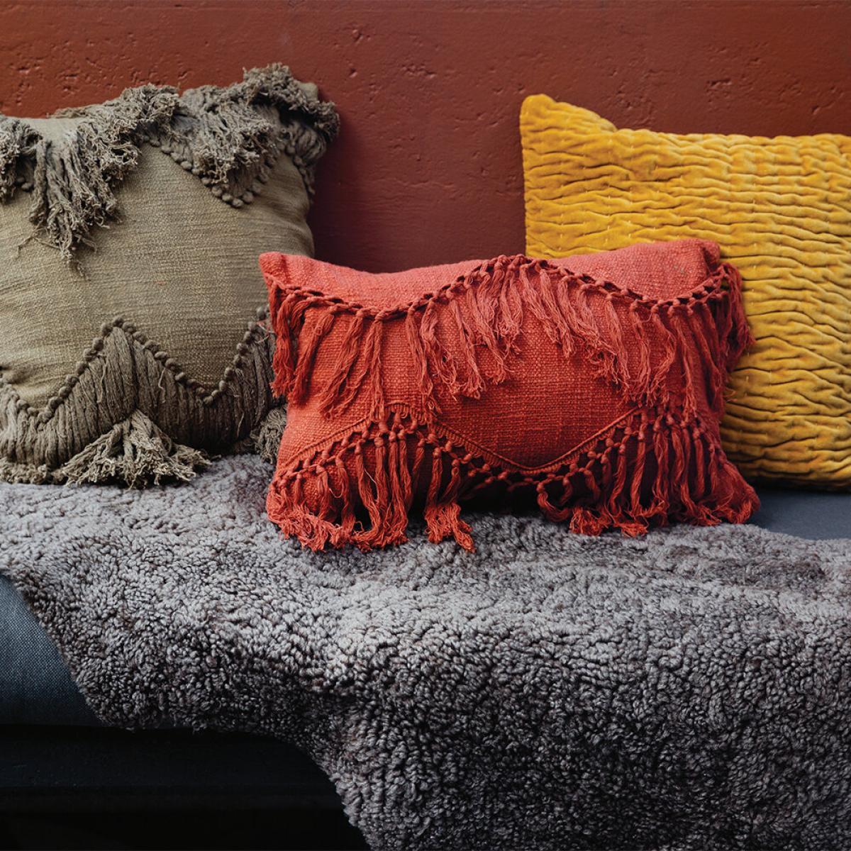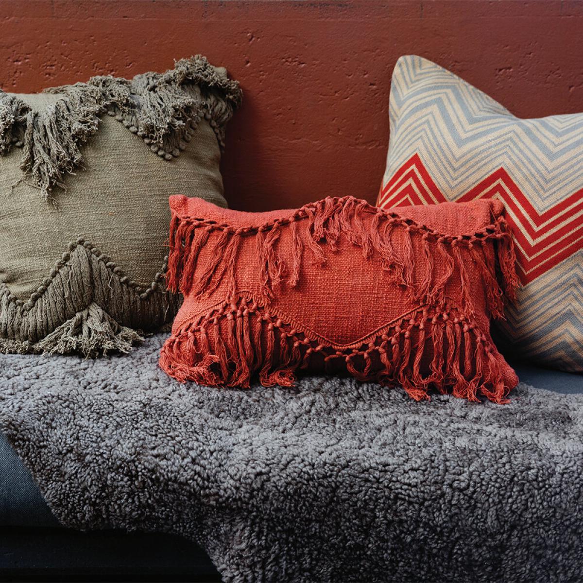 I love the Zig Zag Textured Cushion for its bold colour and tactile appeal, making it an excellent statement piece for both contemporary and boho-inspired interiors. Its burnt orange hue adds warmth and vibrancy, perfect for neutral sofas or beds that need a pop of colour. The textured zigzag pattern and fringed edges bring visual interest and a relaxed feel, ideal for layered, cosy spaces. Practical styling tips include pairing it with stacked neutral cushions or earthy tones to highlight its colour, and using it as a focal point on a plain armchair or bed to create a chic, inviting look. It works well in living rooms, bedrooms, or even outdoor patios, adding personality and a touch of boho flair.