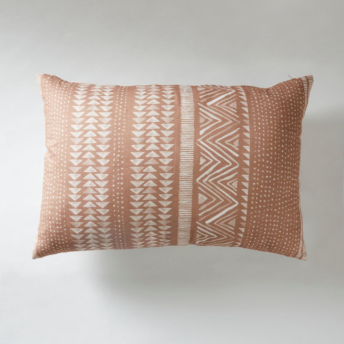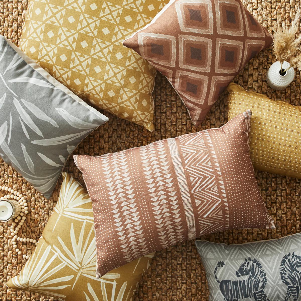 I really like this cushion because of its versatile pattern and neutral tones, making it easy to incorporate into various interiors. It works particularly well in modern, Scandi, or boho spaces where understated tactile textures are key. I’d suggest pairing it with solid-coloured throws or other cushions in shades of beige, white, or even darker browns to create a layered, curated look. For practical styling, use it on a neutral sofa or bed to add visual interest without overwhelming the space. Its pattern can help break up monotony and add a subtle hint of global influence, perfect for adding a bit of personality to everyday living areas.