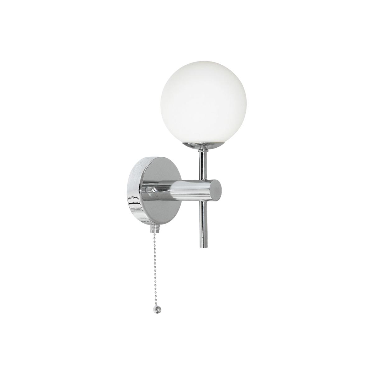 This IP44 Global chrome wall light with opal glass shades looks modern and stylish in any bathroom or kitchen. The sleek chrome finish fitting features a spherical opal glass shade, which provides an elegant source of light. It is also fully splashproof and comes with an attractive pull cord switch. LED's use up to 75 less energy and last up to 20 times longer than incandescent bulbs.