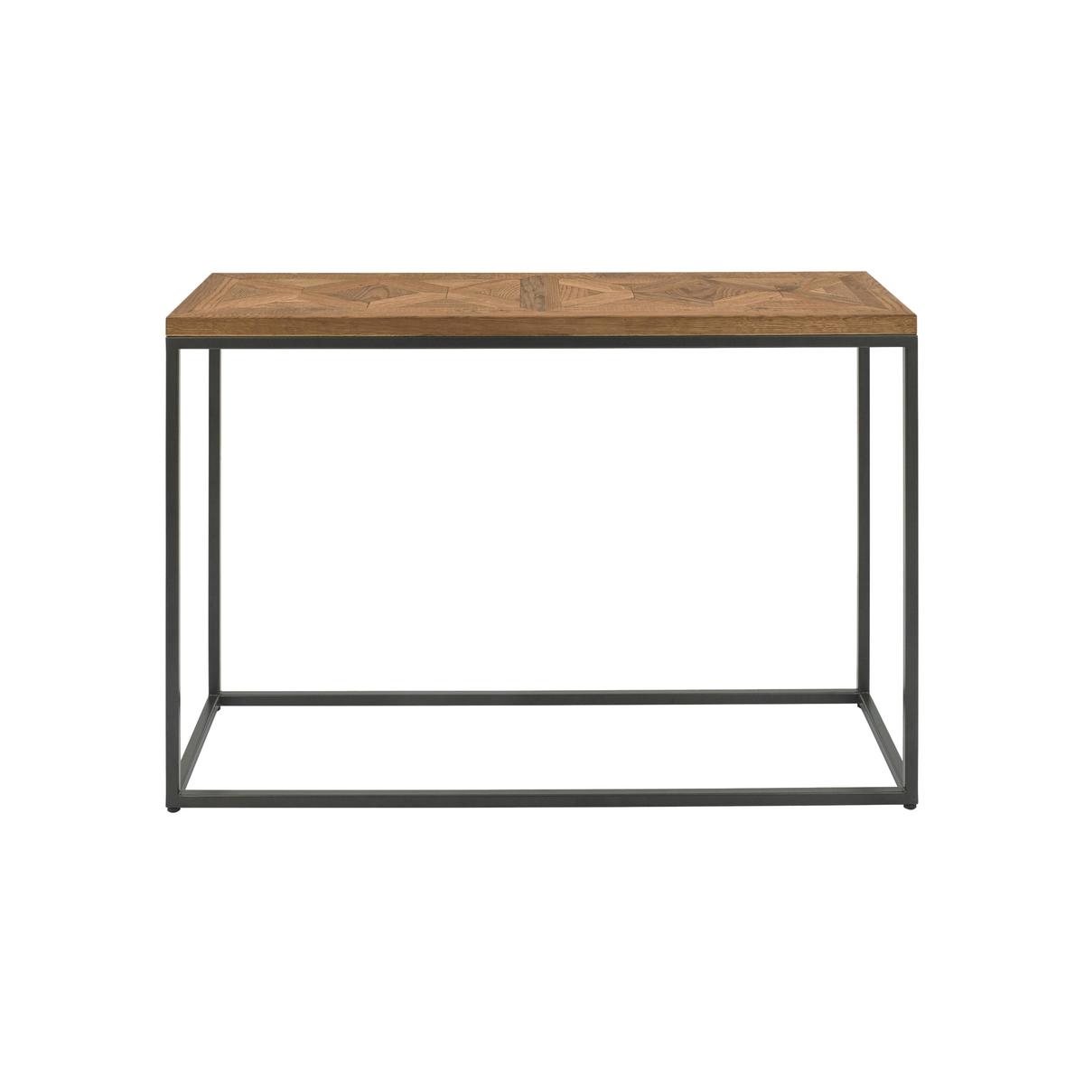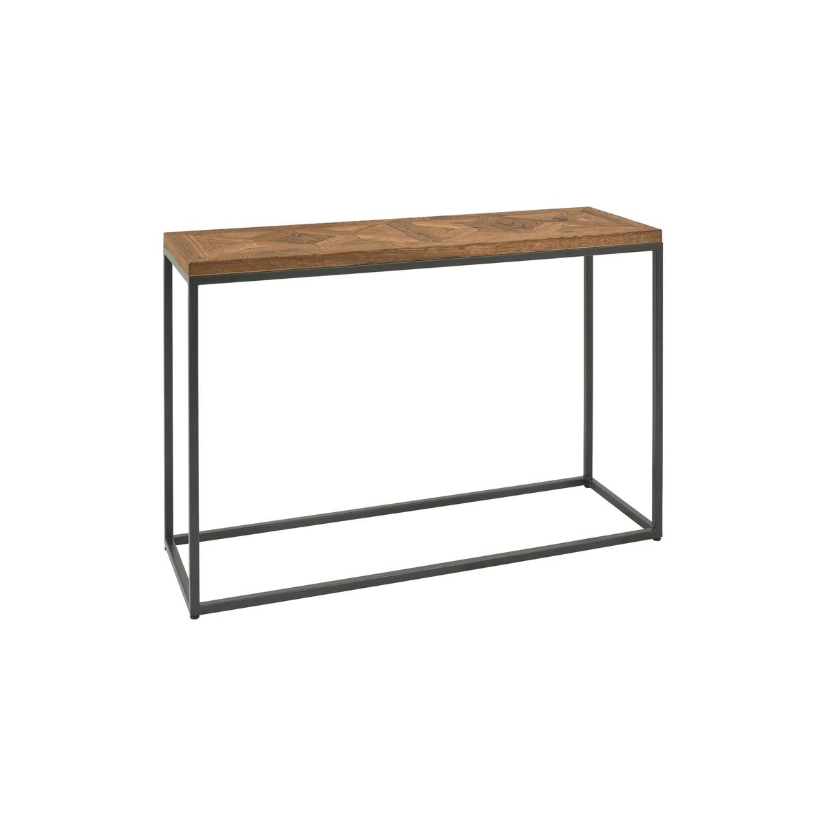 On trend industrial style with a beautiful finish Handcrafted marquetry- patterned rustic oak veneers Powder- coated metal base in gunmetal grey Industrial style shows its elegant side in the Globe console table. The perfect piece for a hallway, or even to divide a compact living space into living and dining zones, this gorgeous console table combines rustic oak and metal work with beautiful and finely wrought patterning. The handcrafted top is made of solid oak with a veneer of distressed rustic oak that has a marquetry- style geometric pattern saw- cut into it for a richness and depth of texture thats quite stunning. This long and narrow table top rests on a simple welded base made of powder- coated metal with an on trend gunmetal grey finish. The Globe console table is part of the Globe collection of living room and dining room furniture, and is one of several occasional tables in the range. The collection also includes extending and fixed dining tables with a choice of dining chair more traditional velvet- upholstered or modern cantilever- based. Did you know? Oak is natural with characterful knots and markings; every piece of furniture is unique. WARNING! Furniture can tip over unexpectedly and cause injury. This item must be fixed to a wall using the anti- tip kit provided. Be sure to use the correct wall fixings suitable for the walls in your home. Furniture Village is not able to fix anti- tip devices for you. Seek professional advice if you are unsure.