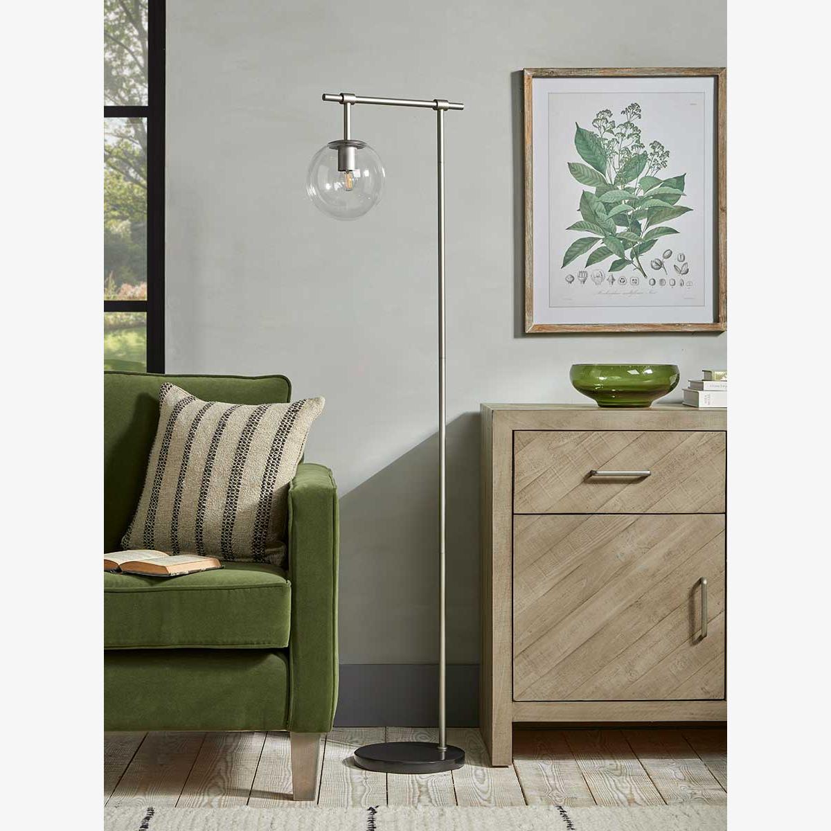 I love this globe floor lamp for its sleek, contemporary design and versatile finish, which works well in both modern and minimalist interiors. Its nickel finish adds a subtle metallic sheen that brings a touch of sophistication without overpowering the space. It's perfect placed beside a reading chair or sofa, providing practical task lighting while also acting as a decorative feature. To style it effectively, consider pairing it with neutral or muted tones for a calm, cohesive look, or contrasting it with bold coloured accessories for a more eclectic feel. Keep the surrounding decor simple to let this piece stand out or use it to add a modern edge to traditional or Scandinavian-inspired schemes.
