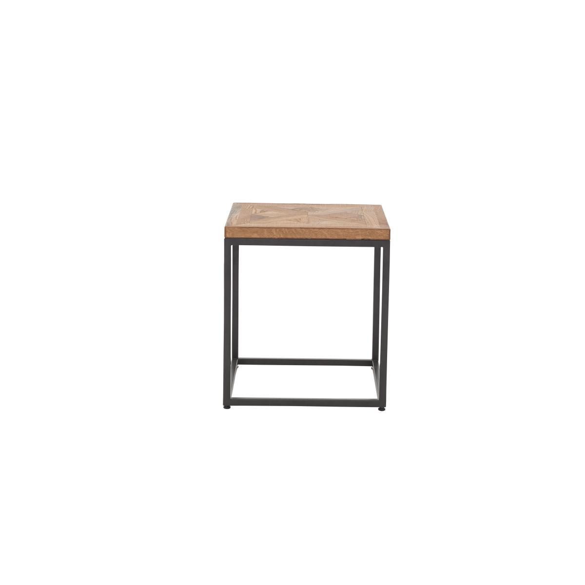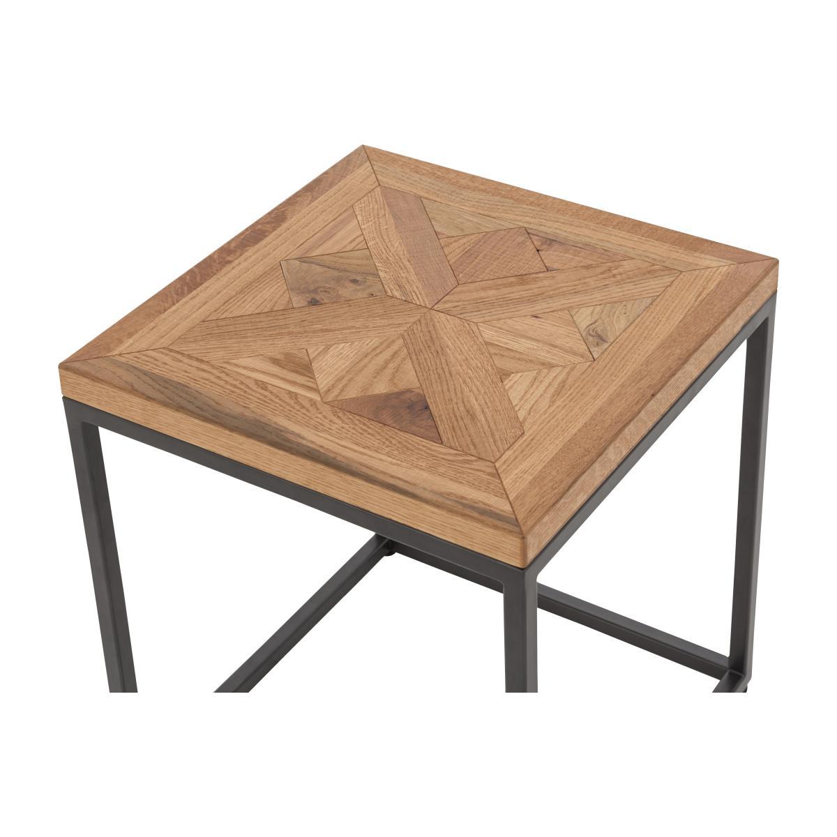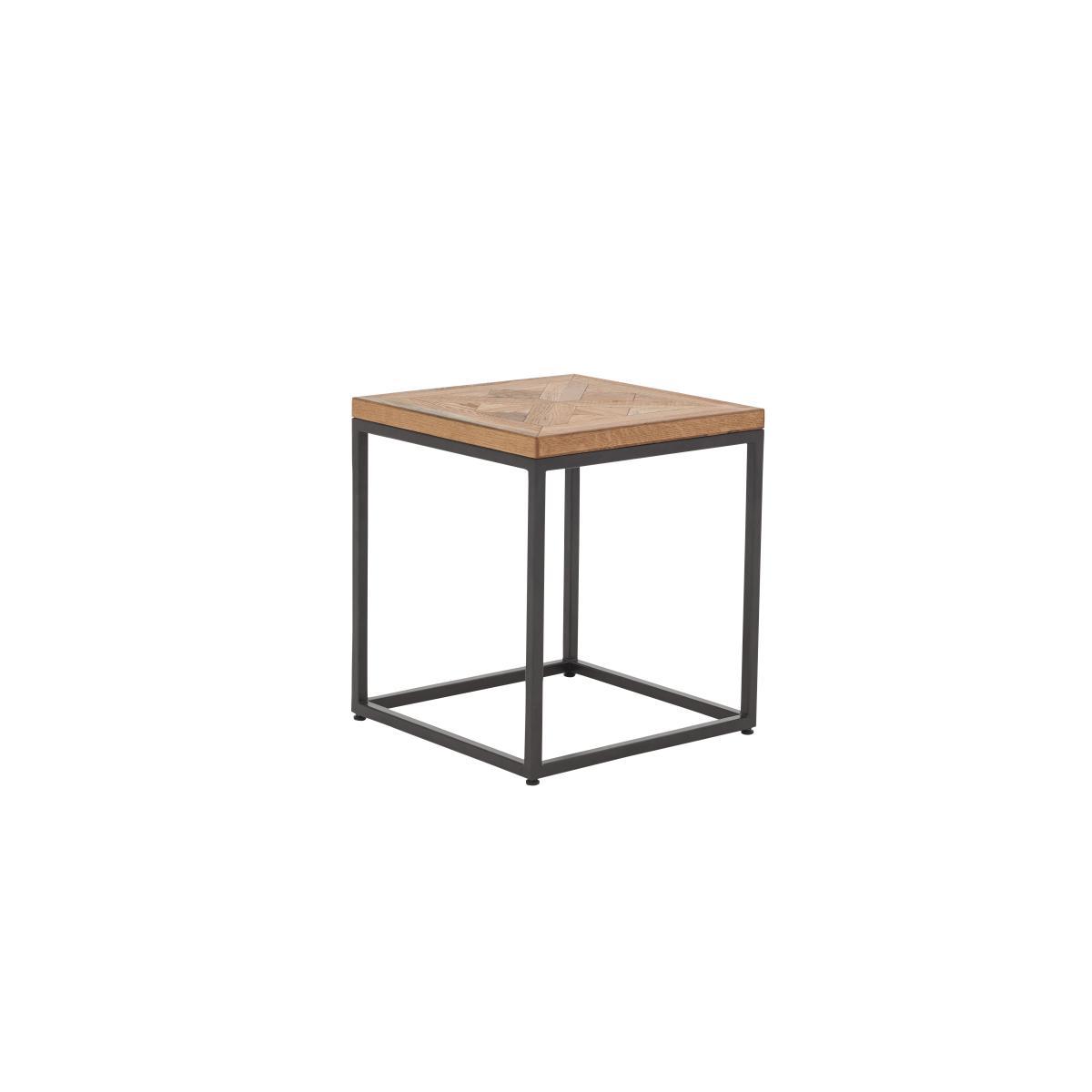 Contemporary industrial style shows its elegant side in the Globe collection of occasional, storage and dining furniture. Pieces feature beautiful solid oak tops, welded metal bases in fashionable gunmetal grey, and the collection’s signature handcrafted marquetry patterned oak veneers, distressed for an authentic rustic finish. Compact in scale, the range’s occasional tables, media storage, and sideboards are designed for modern living, offering excellent storage and display space. The two extending dining tables and the round dining table help maximise smaller dining rooms, and can be paired with either of the range’s two styles of dining chairs – velvet upholstered with studding detail or modern cantilever-based. On trend industrial style with a beautiful finish. Handcrafted marquetry-patterned rustic oak veneers. Powder-coated metal base in gunmetal grey. Offering cool industrial style on a smaller scale, the Globe lamp table combines finishes and materials to create a stunning piece of occasional furniture, thoughtfully conceived and beautifully crafted. The square top is made of solid oak and finished with rustic oak veneers that feature handcrafted, saw-cut marquetry-style geometric patterning with a distressed finish that accentuates the wood’s natural texture. The welded powder-coated metal base, simple and angular, has a gunmetal grey finish that’s so on trend. Perfectly sized for a more compact room, the Globe lamp table has an open-plan feel which can help a smaller space feel less cluttered. The Globe lamp table is part of the Globe living and dining collection which includes a wide range of pieces from extending dining tables to storage and occasional pieces. If your living space is more compact, consider the Globe shelving unit – useful display space that takes up less floor area – or the Globe narrow sideboard with shelves and a concealed drawer. Did you know?. Oak is natural with characterful knots and markings; every piece of furniture is unique.