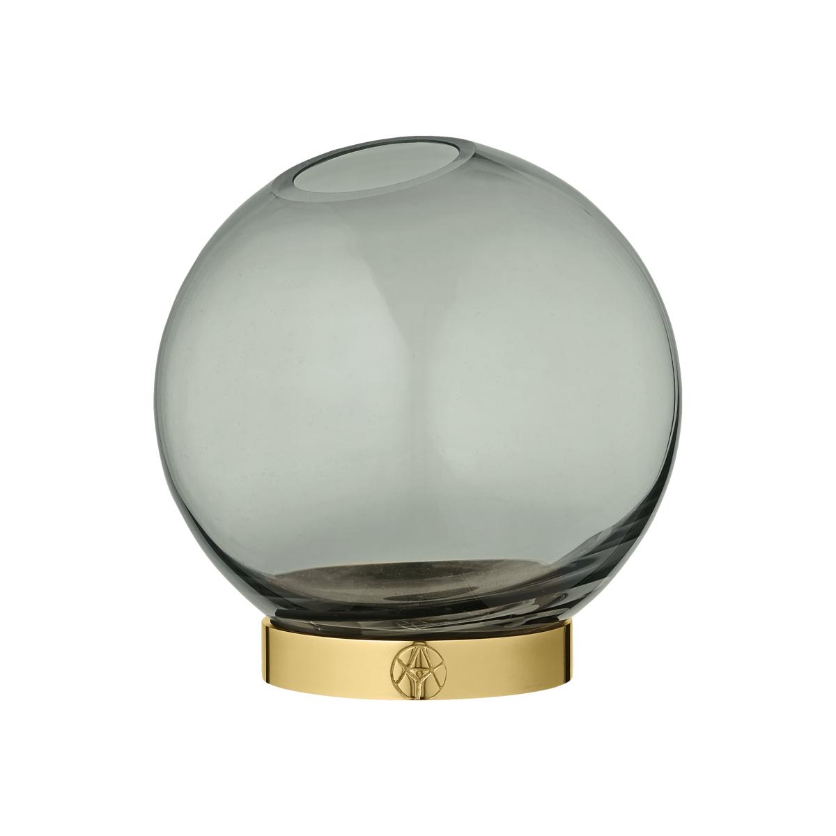 The round Globe vase small from AYTM is made of colored glass with a matching base in solid brass. The vase can be tilted in different directions to create different effects and can be filled with a bouquet or just a single branch. Place the little vase on the living room table, on the windowsill or in the bookshelf and match it together with other lovely decorations from AYTM!.